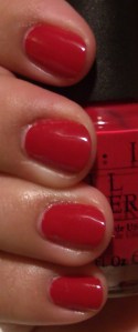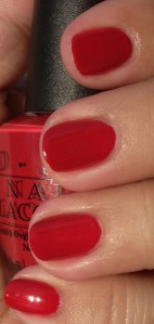 On me, this was too similar to Bullish on OPI. It’s just a bit more red. It’s a pretty enough color, but like BOO it’s not enough to tempt me into keeping it in my collection. Some lucky friend just may find it in a nailpolish care package…and you will never know who you are! Muahahaha. In the outdoors shot it looks more pinky red…again, not me. When it comes down to it, I’m a black nail polish wearing, Nine Inch Nails listening, Doc Martin wearing goth girl at heart who hates vampires that dazzle. Dazzling vampires? What kind of fuckery is that shit, anyway?