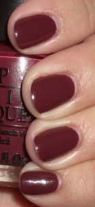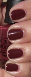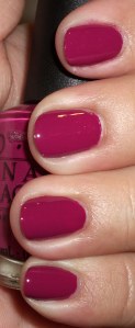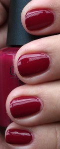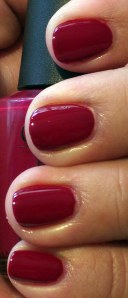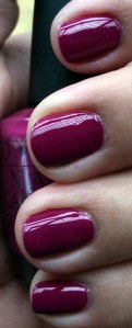 This looked very berry-ish in the bottle, but once I put it on it did surprise me…in a good way. Two coat application and the color wasn’t so bad. Once outside, it was a pleasant surprise that I liked this color. It appears more red than berry and it makes me appreciate it. It’s good enough to keep in my collection…for now or until I re-evaluate it at a later date.