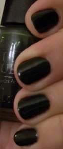 This color took my breath away. As most of you know, or haven’t guessed by now, I have an unholy love for dark nail polish…and this is one that is just as cool as Suzi Skis In The Pyrenees. While Suzi was charcoal grey, this is a mega deep moss that looks black but when in light, hints at green. So again, they’ve totally got it for me.