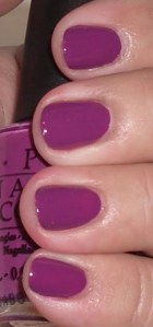 I have never been a very big purple nail polish kind of girl, but somewhere along the way I started falling for the color. First it was a deep eggplant color, then a soft seduction by a lighter shade by way of royal purple, working its way up to this. I know I complained about the brightness of this collection, but I have to admit that I am smitten with this color. I have dubbed it my “It can make Carina happy in a flash” color (when deep fried food won’t do it). I think my husband shall take note. 😉 Much as I did love the color, again…it’s the formula. I had to do three coats and even three applications you can still see my nail underneath if you look at the ring finger. Grrr…