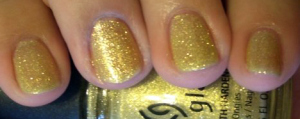 5 Golden Rings – Indoors, luminescent lighting. Love this. I am normally not one to branch out past dark nail polish, but this…this lifted me up and made me consider wearing it more than once. Maybe I’ll team it later on with an awesome red for a moon manicure.