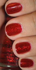 Ruby Pumps – Indoors, luminescent lighting. Taken with hubby’s rockin’, kick butt camera! I love this red. I have two bottles. Why? Because If I’m not wearing Emerald Sparkle, I’m wearing this. It’s beautiful – there is a LOT going on. It’s a gorgeous close to true red. With glitter. Not just any glitter, but tiny flecks that stand out but yet are humble, too. I can’t put my finger on it, but I know that I call this my awesome sauce color.
