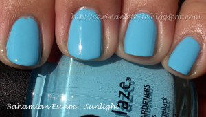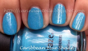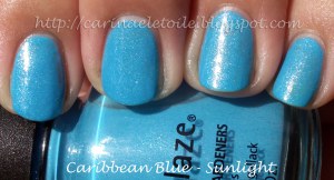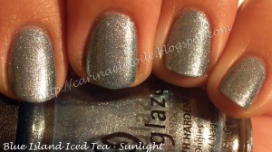 Normally I would have hated this right off the bat…because of the glitter. I hate glitter in nail polish. I hate glitter polish. It’s only recently that I’ve been able to barely tolerate shimmers. I’m a creme kind of girl…shimmer and sparkle is for my face, ok? 😉 Anyway, this color is an awesome close to turquoise blue with some glitter thrown in, but it’s not an in your face kind of glitter. It’s very subtle and I think that’s why I liked it. It’s also got a hint of shimmer in it, too, so I think that really downplayed the glitter factor.