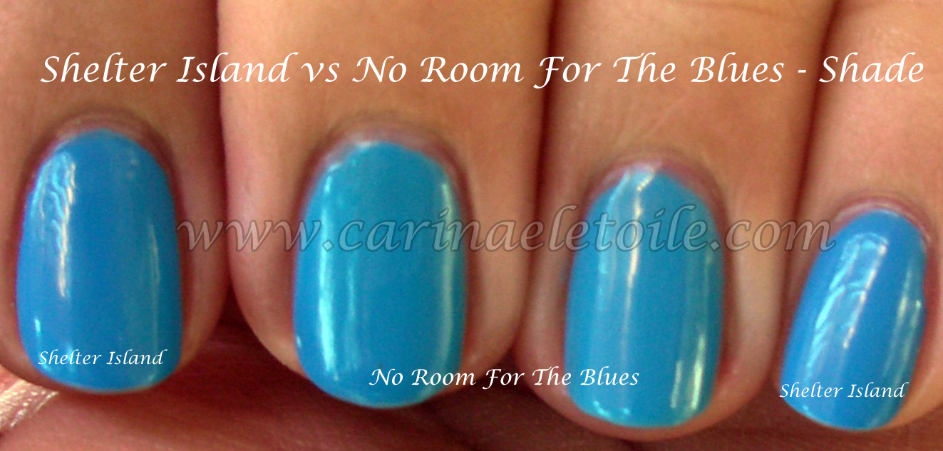 Out of these two, I really love Shelter Island the best. I wear it whenever I can. However, you can’t really see the very subtle difference between the two here.
