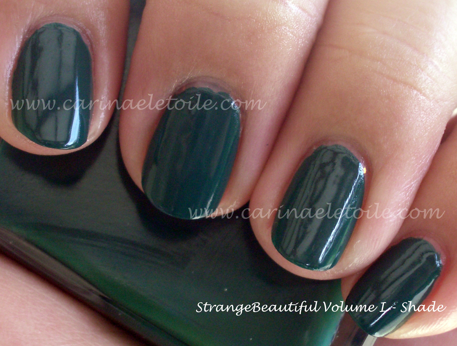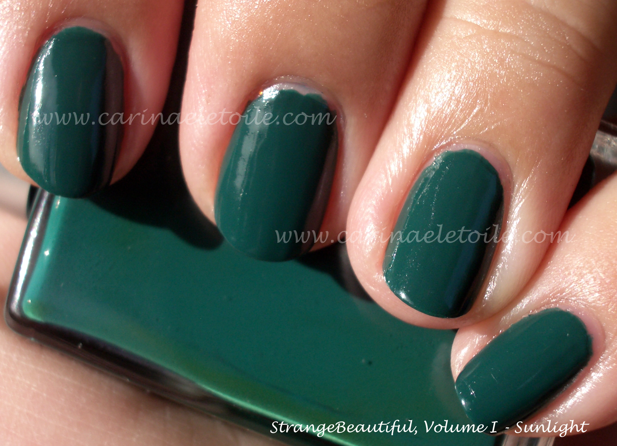I am showing you two greens – the first is from the StrangeBeautiful Collection Volume I. That was sent to me by my very awesome friend Kelly. Thank you! When we’re in Vegas I definitely owe you several drinks. 🙂 The green from the StrangeBeautiful collection didn’t have a name so I generically called it…green. Hah. Good thing no one’s ever asked me to name a nail polish or anything. The other is a Rescue Beauty Lounge green called Recycle. C’est très àpropos, n’est-ce pas? Oui!