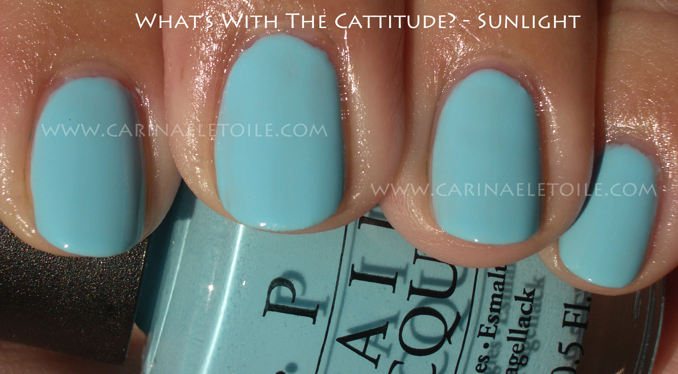 Out of the entire collection, Who The Shrek Are You? and What’s With The Cattitude? are my favorites. This isn’t quite as deep a turquoise as it could be, but it’s still pretty darn beautiful. The correct shade that I can really associate it most in terms of gem stones is called Sleeping Beauty Turquoise. Sleeping Beauty Turquoise is mined in Arizona. What makes it different from regular turquoise that is prevalent in Native American jewelry is the lack of intense color. It has a slight shade of purple that runs through it making it less bright, bringing it to a muted shade of turquoise that works well with my skin tone. When set in silver and gold, Sleeping Beauty Turquoise doesn’t look as ‘plastic’ as some other turquoise can. Ok, sorry, digressing. I love jewelry and making jewelry and I shouldn’t pull that into a nail polish post!