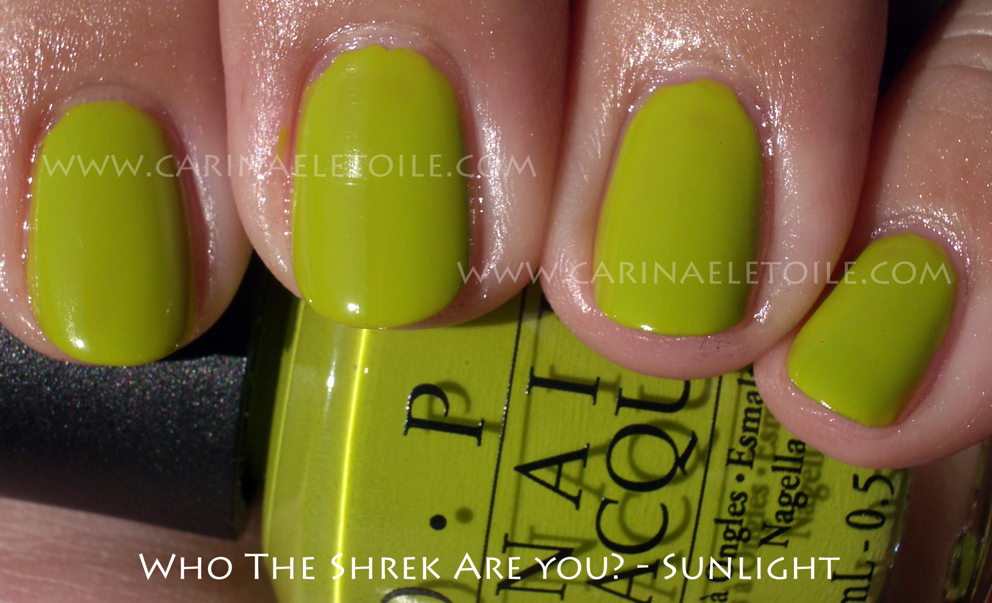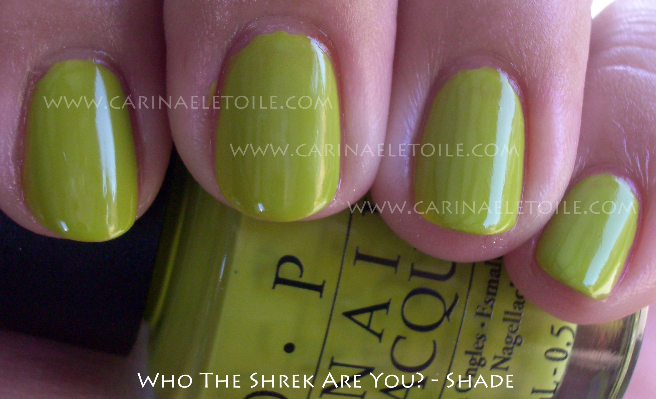 This is a limited edition collection OPI released that is based on the new Shrek movie that is due out on May 21. I could be wrong on the date, but I can’t be arsed to look it up. Sorry. I’m too involved with the nail polish!