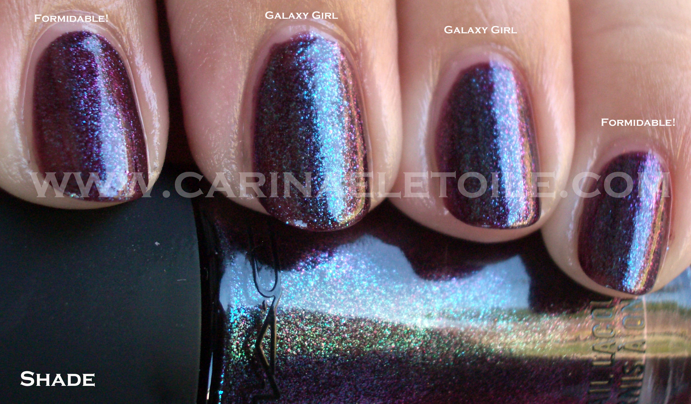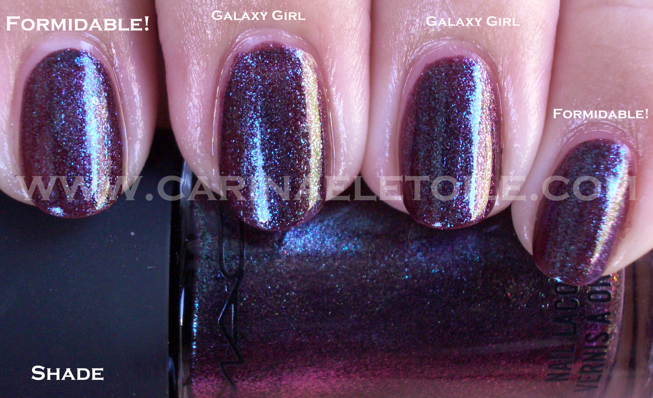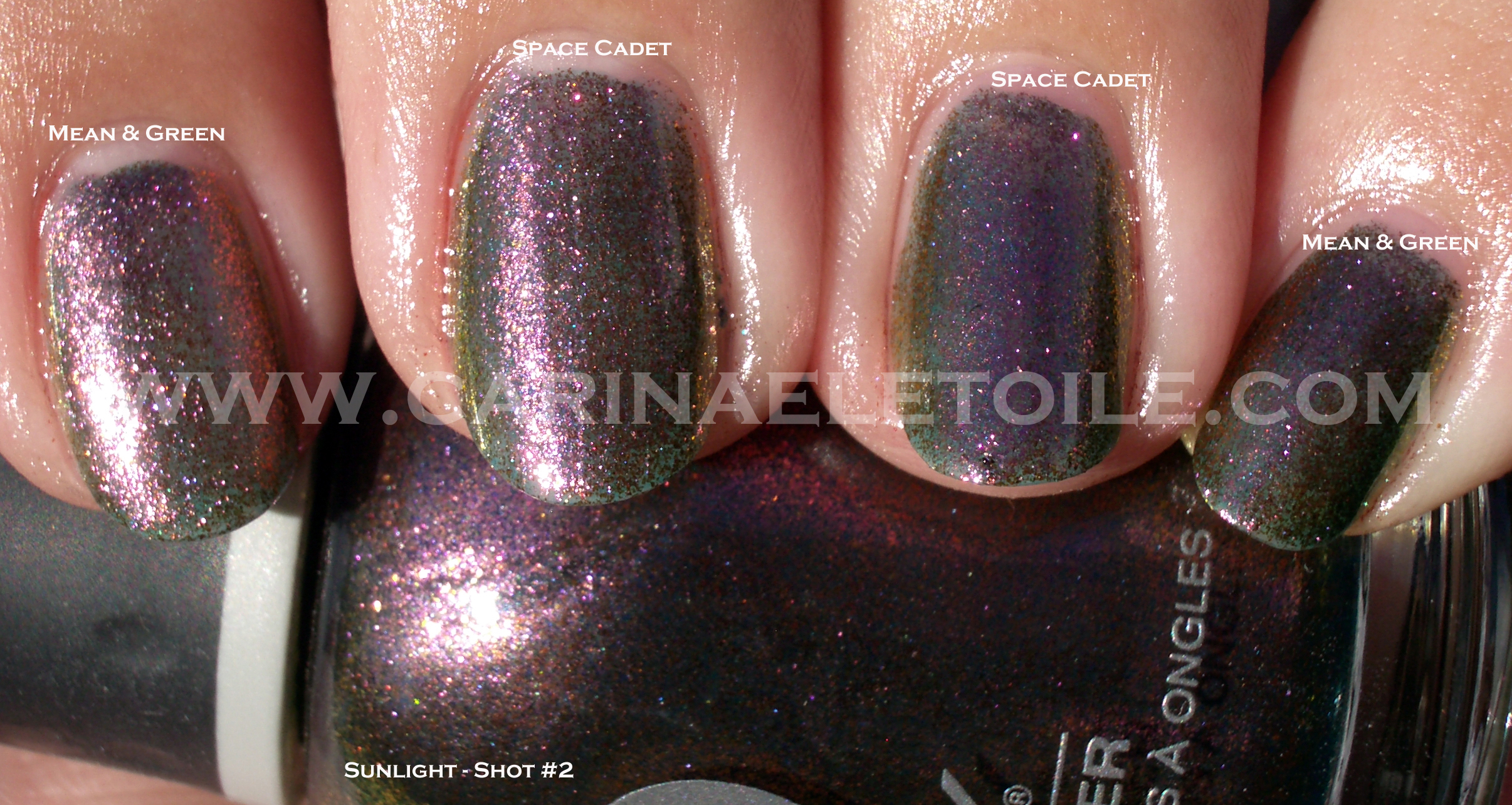 There really is no discernible difference between the two, is there? Even the size of the glitter, etc. M&G is a bit thinner than SC. 3 coats of each.