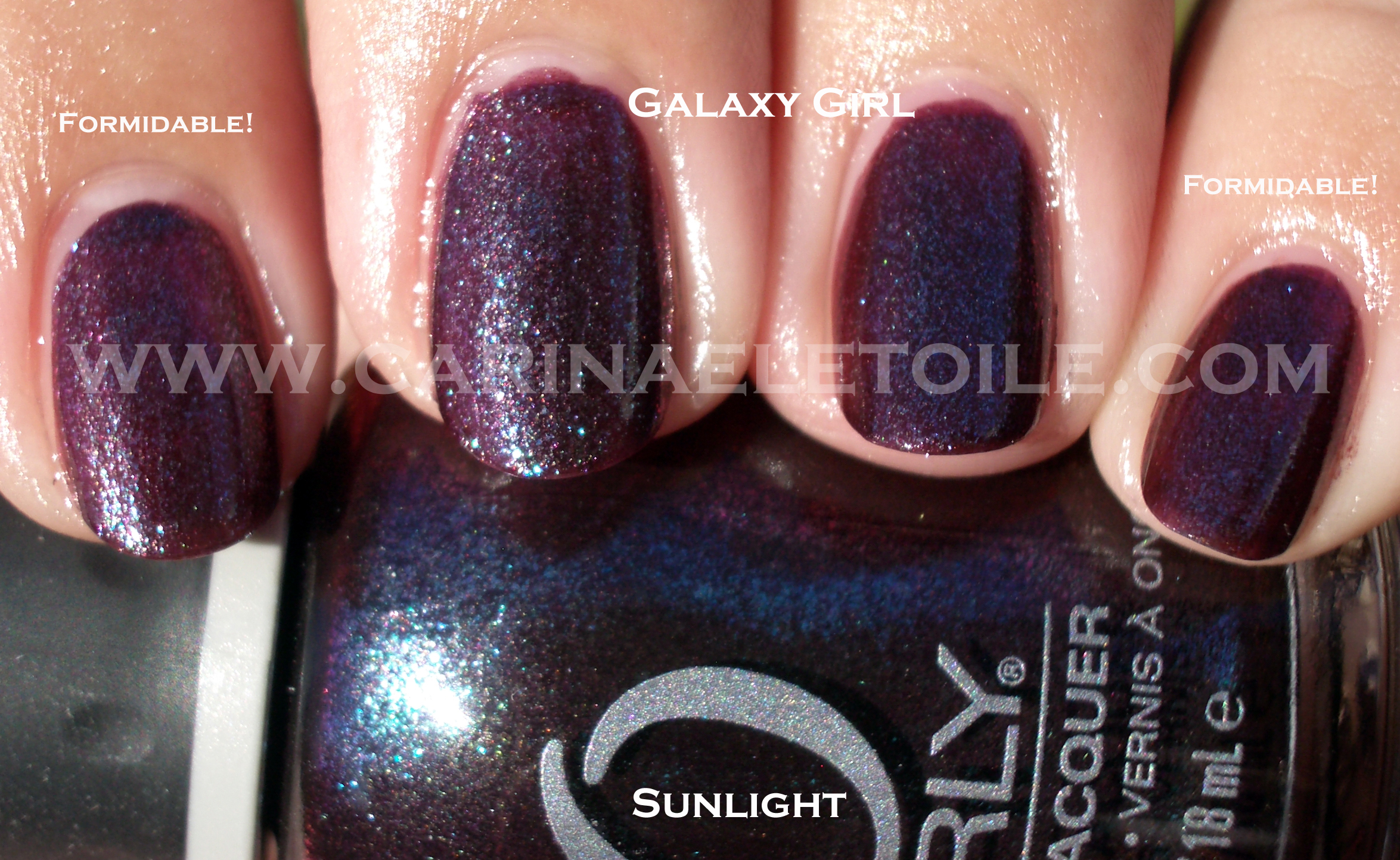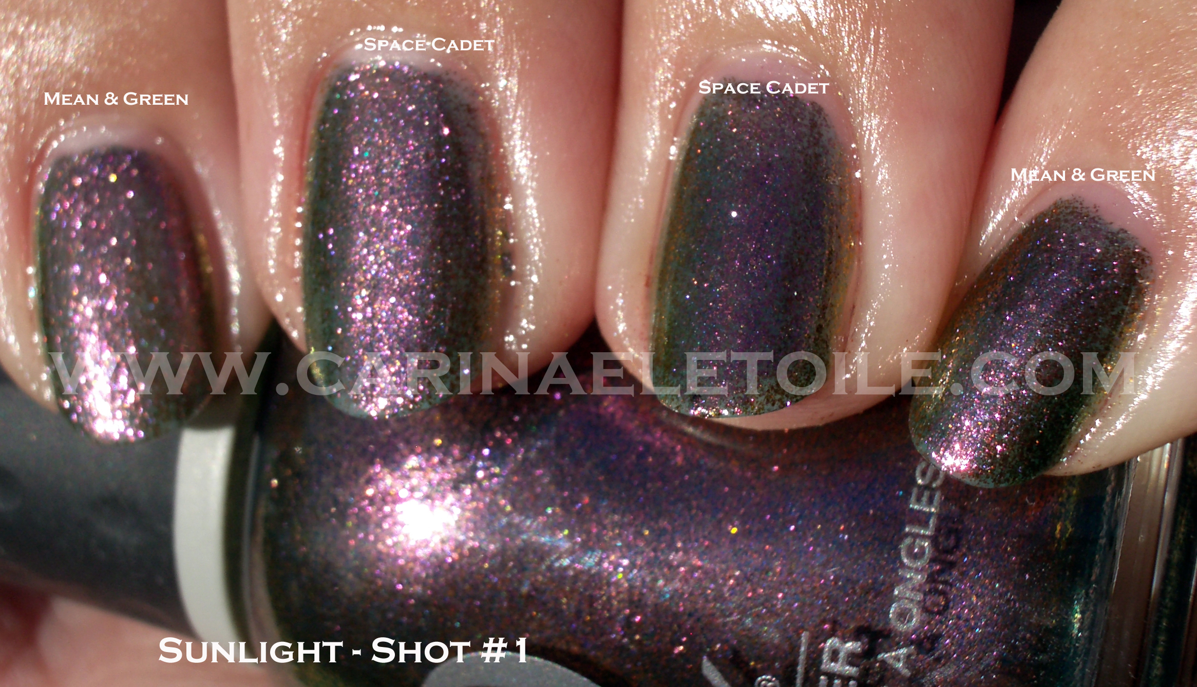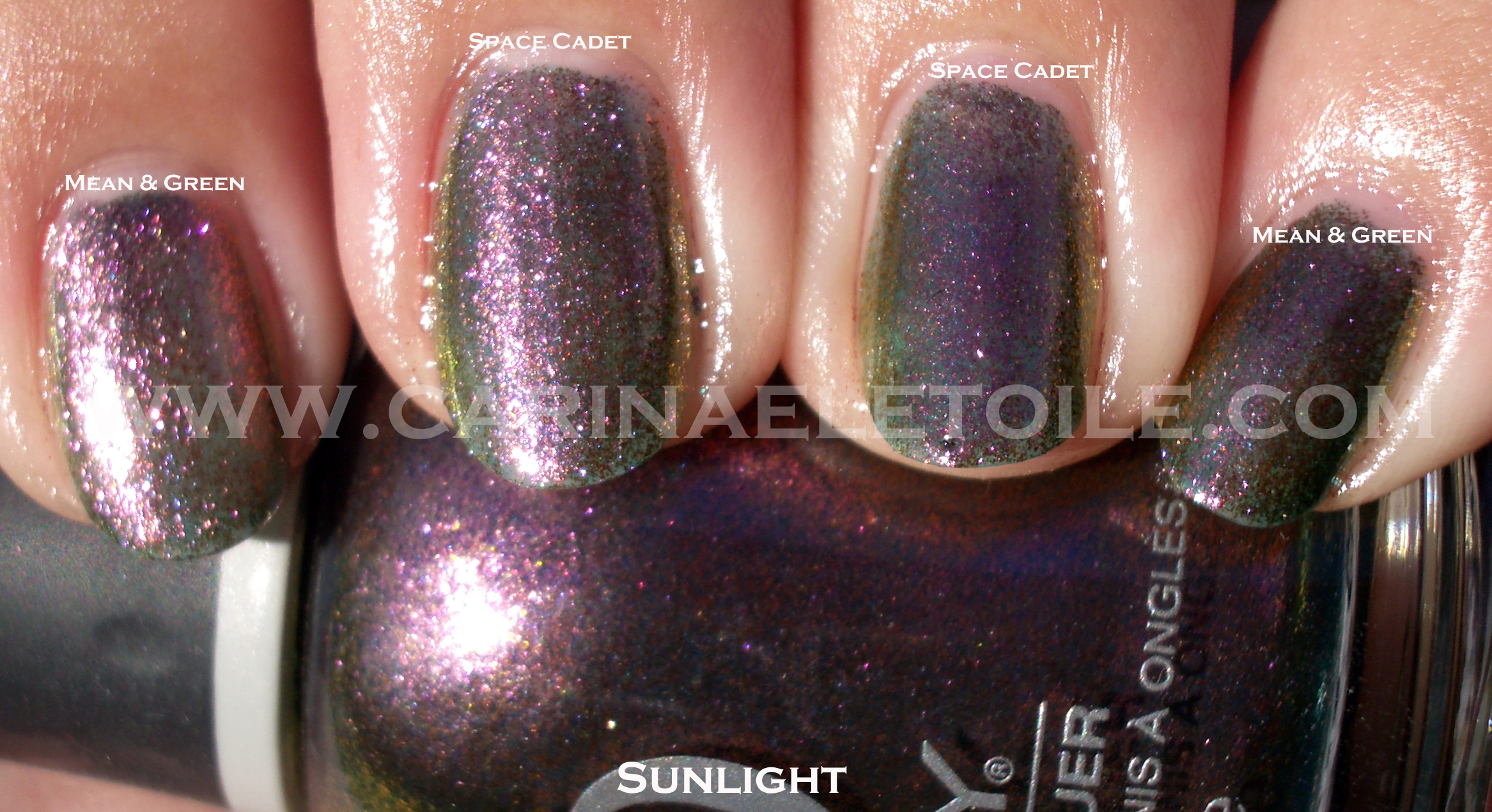 There really is no discernible difference between the two, is there? Even the size of the glitter, etc. M&G is a bit thinner than SC. 3 coats of each.