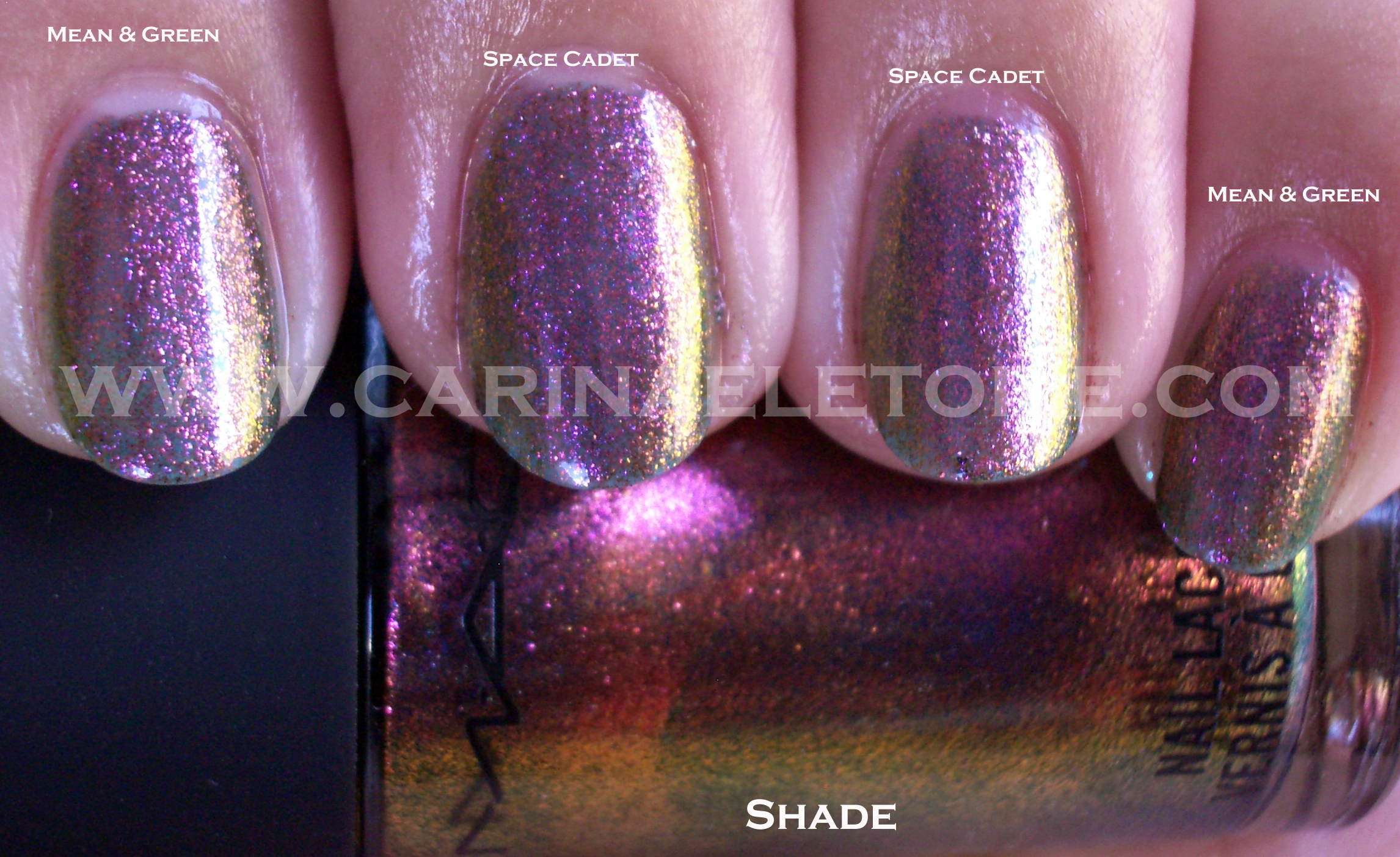 I do wish MAC had put some Villains on the polish bottles. They did it for the other items in the line, so why not this one? Kind of bums me out. Overall the colors were cute, but as you can see, nothing that really wowed me. I’ve seen Mean & Green and Formidable! before thanks to Orly. I’m still going to hang on to these, though. 😀