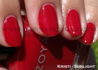 Zoya’s Kristi is from Zoya’s Fall 2010 Collection, Wonderful. Kristi is a wonderful blue based red. Not quite true red and not blood, but a good mix of red, hint of orange and strong tinge of blue. This looked absolutely wonderful on me! I just may very well end up wearing this shade for the weekend…Hm…