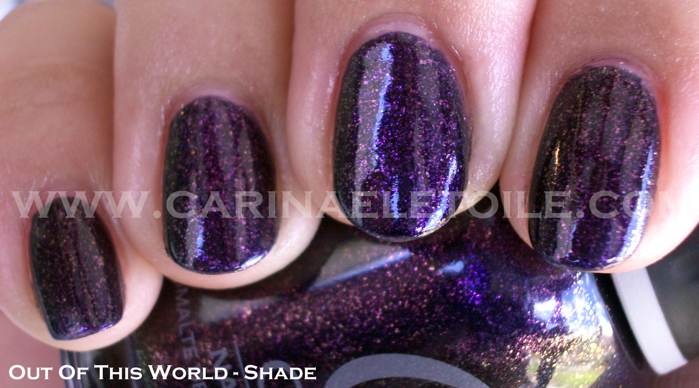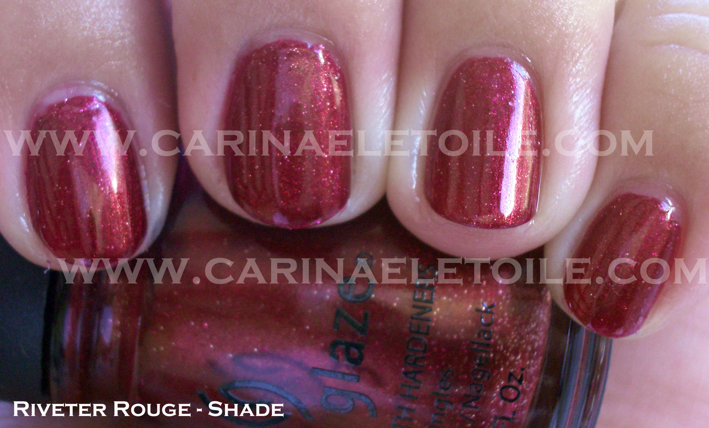 You can see the shimmer here and even the shimmer while it’s in the bottle. Very pretty. However, the color really isn’t me – doesn’t look good at all. Maybe I’ll learn to like the neutral colors, but this type of neutral doesn’t entice me. 🙁