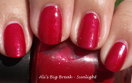 Hello, Friday Red. What isn’t visible in the picture is the pink undertones. I’m looking at the bottle right now and the pinkness isn’t shown. I love the faint shimmer that makes if glow. Bravo, OPI!