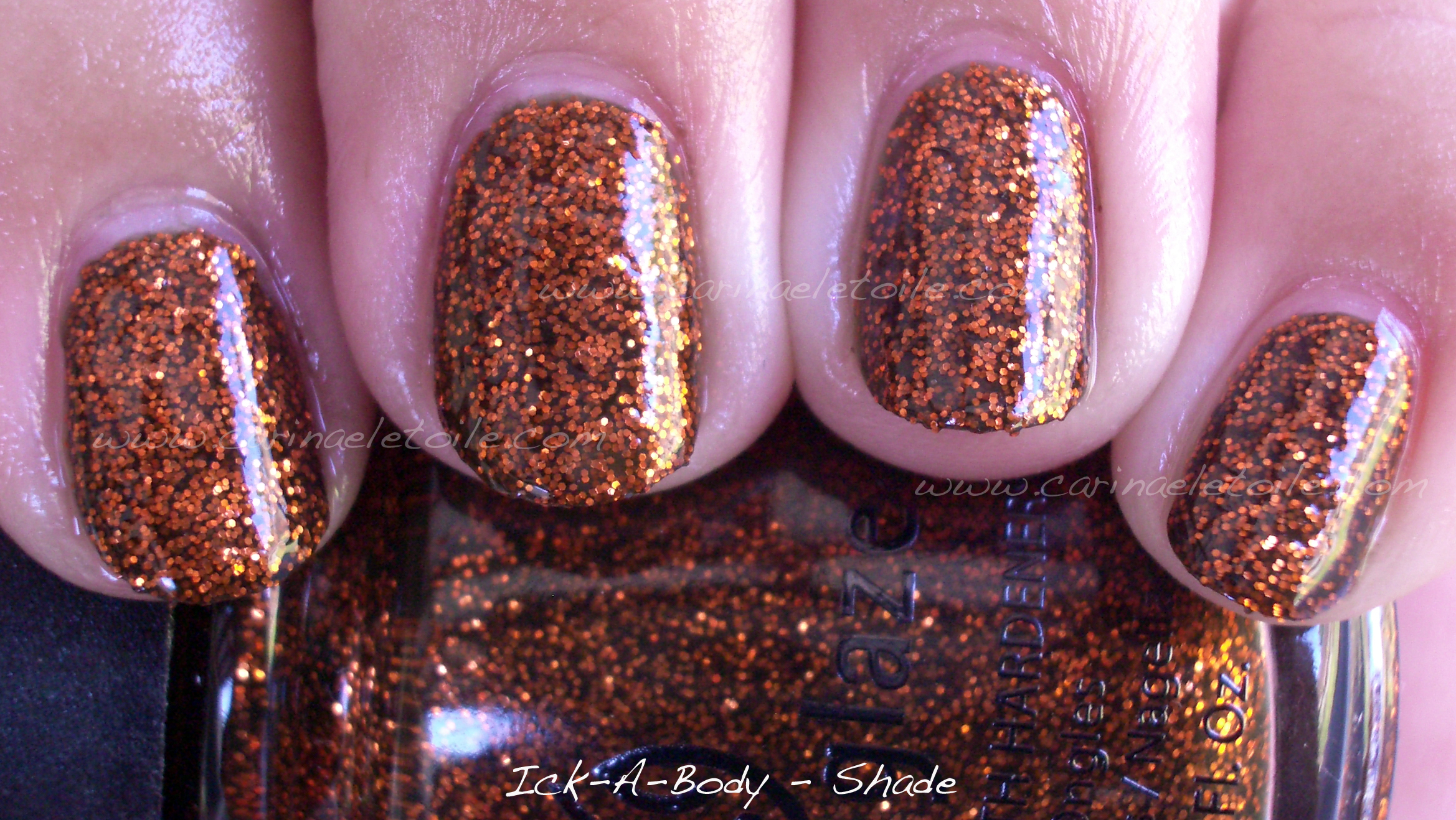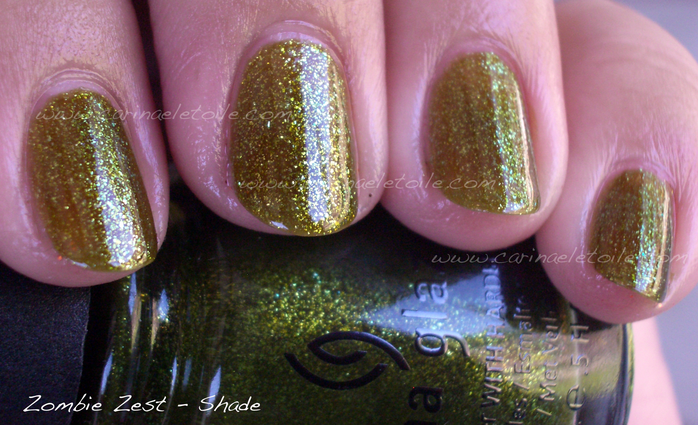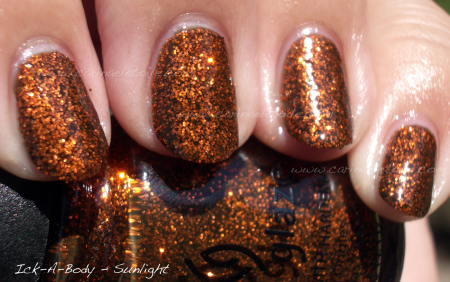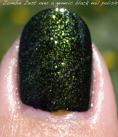 Bad Romance has different shapes of glitter and the base is a deeper, denser black. Had I not done a side by side comparison, I’d never have even thought that these were even different aside from the glitter size. Mummy May I is a cute name! I just looked back on my notes when I swatched these and BR and MMI are 3 coats.