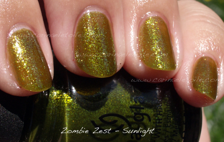 Really liking this green because I don’t have anything like it. I’ve heard it’s similar to SpaRitual’s Optical Illusion, but I haven’t had the chance to compare it because I don’t have OI and SpaRitual is a lot harder to get ahold of than most nail polishes. Pity SpaRitual doesn’t sell on their site because I’d rather purchase through there.