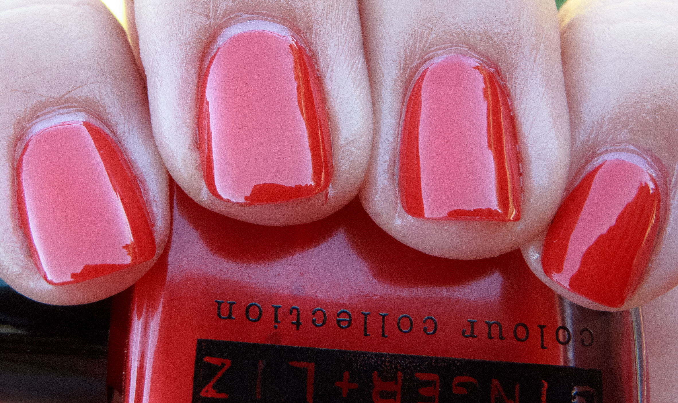 Aaaaanyway, I’ve strayed. Sorry. This particular shade had a super high glossy shine and I almost didn’t put on a top coat. However, I wanted to be out the door and be able to shove my hands into my purse if need me. So I put on my favorite fast drying topcoat – Poshé – and was out the door in twenty minutes, happy with the knowledge that I could scrounge in my bad somewhat safely and not ruin my mani. I wore this color for 5 days and it lasted perfectly – no chips, no snags. I even got the tip of my thumbnail caught in the zipper of my bag and this color didn’t budge! Way to go awesome formula. Fast drying with a high gloss. A+ again, Ginger & Liz.