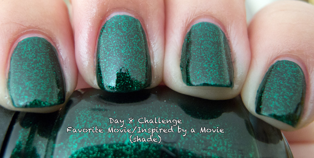 Originally this was going to be freehand nail art based on the movie The Matrix. Freehand? Nail art. LOLOLOL I had started by pulling a black polish and then looking for some shade of green that would play well on the black background so it would look like all the green lettering from the movie – I hope you know what I mean. The green on black is pretty well-recognized. Anyway, pulled all these super fun greens out and suddenly saw Emerald Sparkle by China Glaze. It is a bit of a blackened jelly green base with this fabulous green glitter to give it some serious kick…and kick it does. The glitter just glows! So much so I kept thinking of the Matrix.