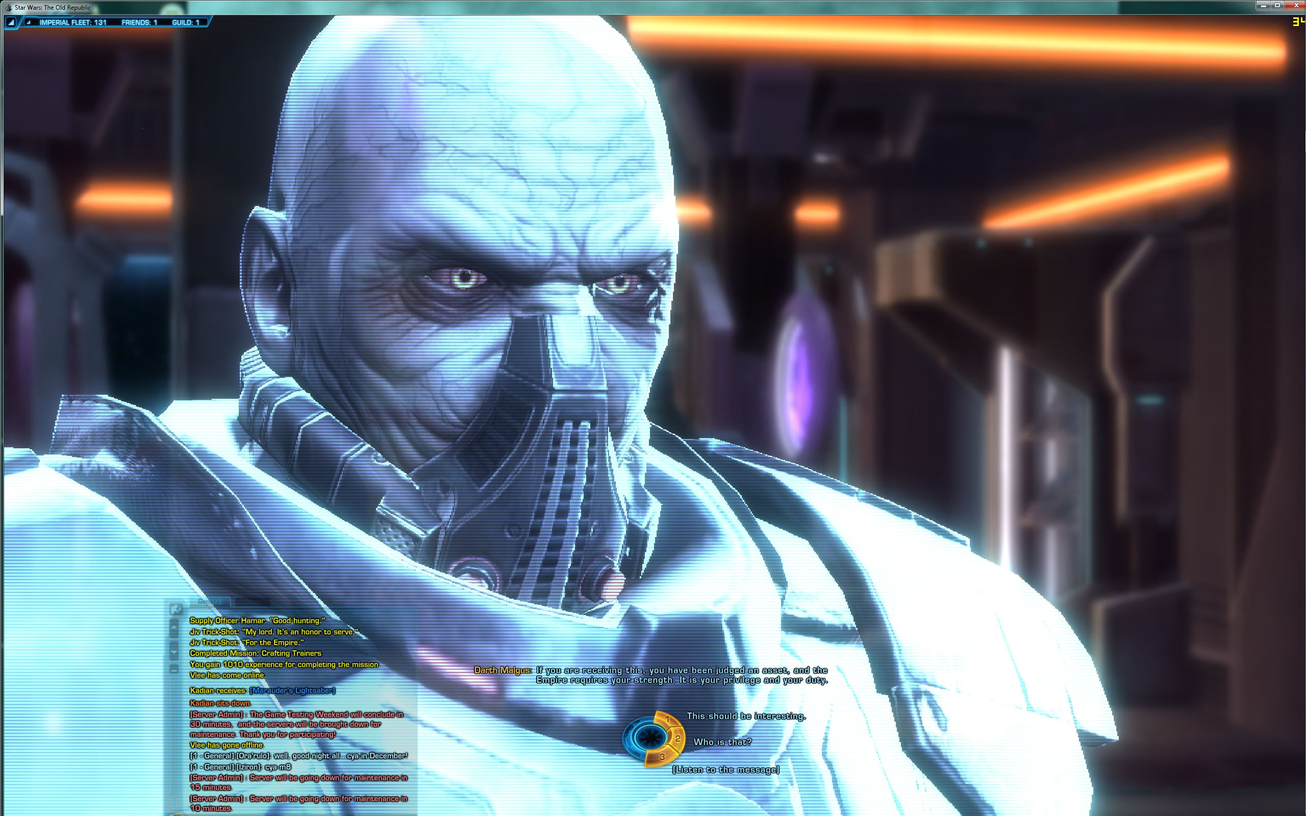 For this particular instance of beta I was going to be playing with my people from my old Euro Guild on EverQuest — Raging Fury. I got lots of help from Fenlayen and Thordanis. I also ended up playing the Empire side. I HAD A BLAST. Not only was I playing with old friends who were extremely patient with my lack of direction and trying to shift over from Light to Dark side, but I found the Dark Side was fun! Like it was fun playing evil, torturing someone…besting my Master and most of all…just being a Sith Sorceress. I decided to play a healer. What can I say? Ever since my EverQuest days, I’ve loved being a healer, even when I strayed into DPS territory.