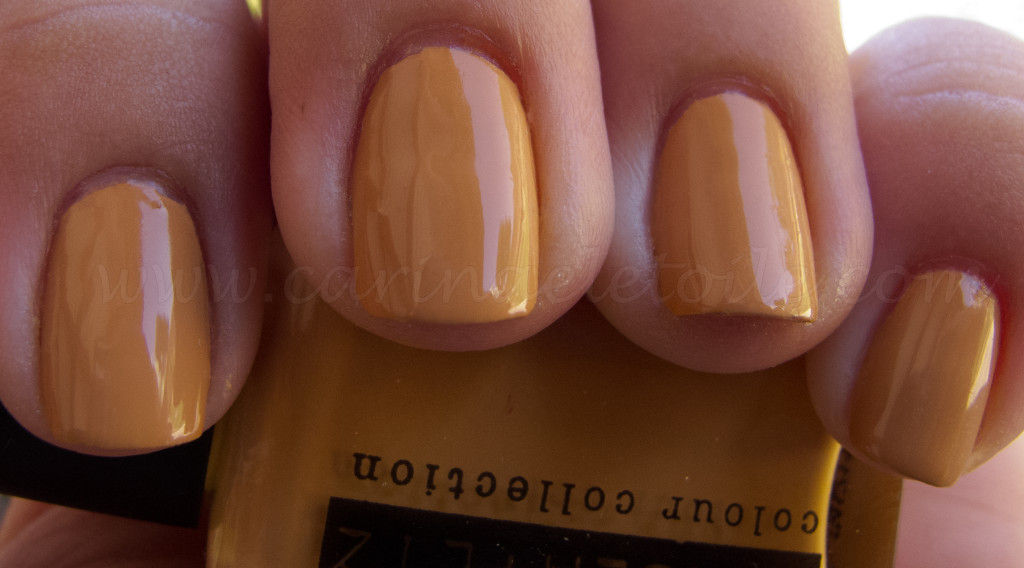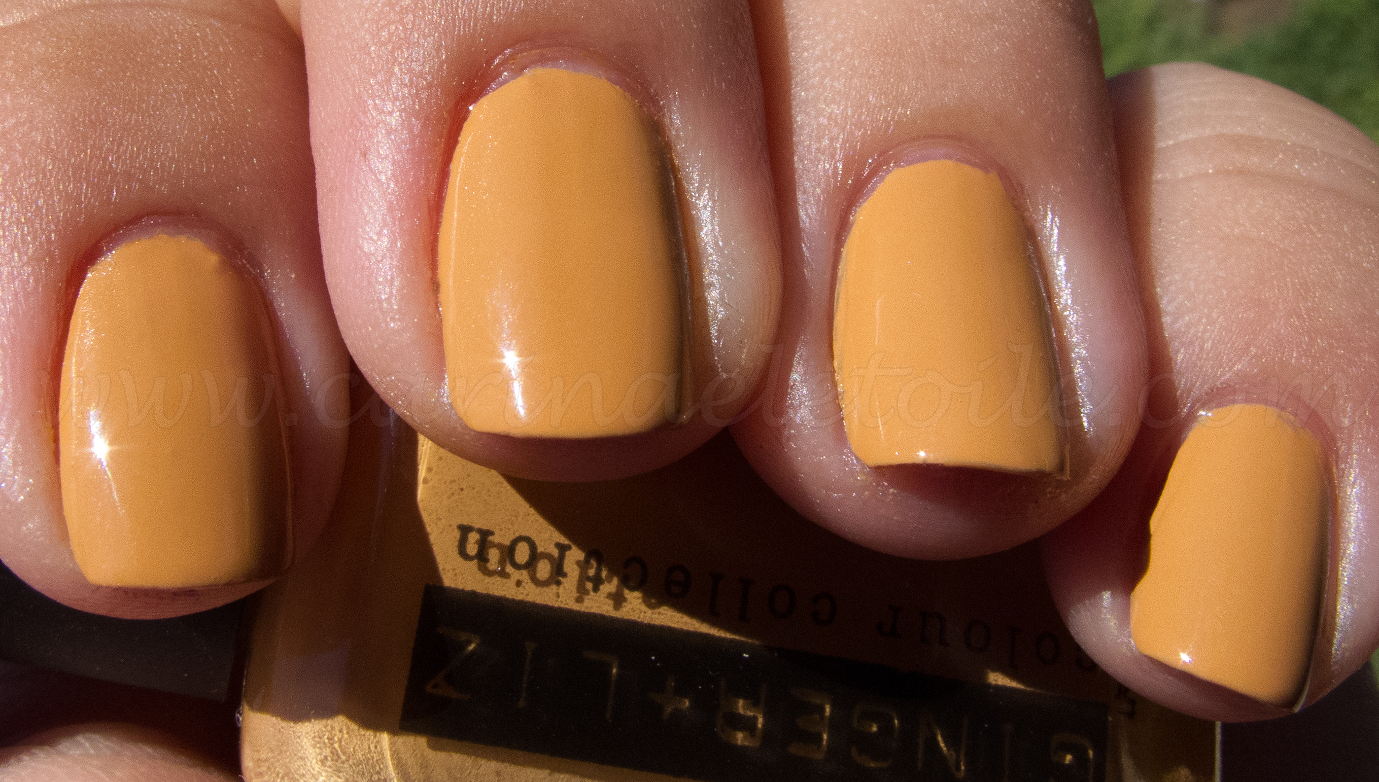 Next up is Ginger and Liz Most Wanted which is described on their site as “…Most Wanted was inspired by the feminine yet edgy and cool mustard “it” colour that has hit the fashion world by storm, again. We created a harvest like gamboge-mustard hue with a crème finish that compliments all skin tones. Definitely a must try!” This particular formula and shade for me were a dream. I never thought a color like this could look halfway decent on me, but I was wrong! Intensely shiny before even applying a top coat, I fell in love with this while swatching. It was also fast drying. I just may have to wear it today for my birthday!