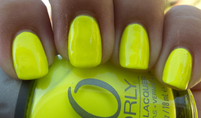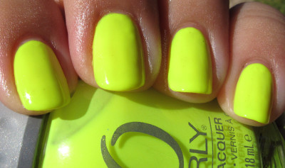 Orly Glowstick was this insane, INSANE shade of yellow that was bright neon yellow with some green undertones. The moment I put it on, I kept thinking it was this crazy highlighter yellow from my school years of yore. Orly Glowstick was a bit of a pain to work with, though. I kept hoping that it would eventually work out after the first coat and be opaque. Not the case. What you see here on my nail is four, yes 4, coats applied in the hopes that it would all smooth out and no visible nail would show underneath. Nope. After four coats, you can still see the nail line. To make matters worse, Orly Glowstick took forever and a day to dry. That was not fun, my friend.