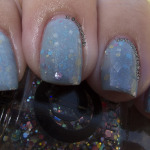 Application was a bit chalky and the first coat had me disappointed, but after two coats it was golden. I added a third coat because I’m deficient when it comes to applying polish colors. I either get it right or I get it so wrong it all looks awful. While this was chalky in application, which is mostly due to the glitter that just explodes on your nail, it didn’t have cuticle pull. For the most part, this was a well-behaved formula – WOO HOO! What could top that? Why the dry time, my dears.
