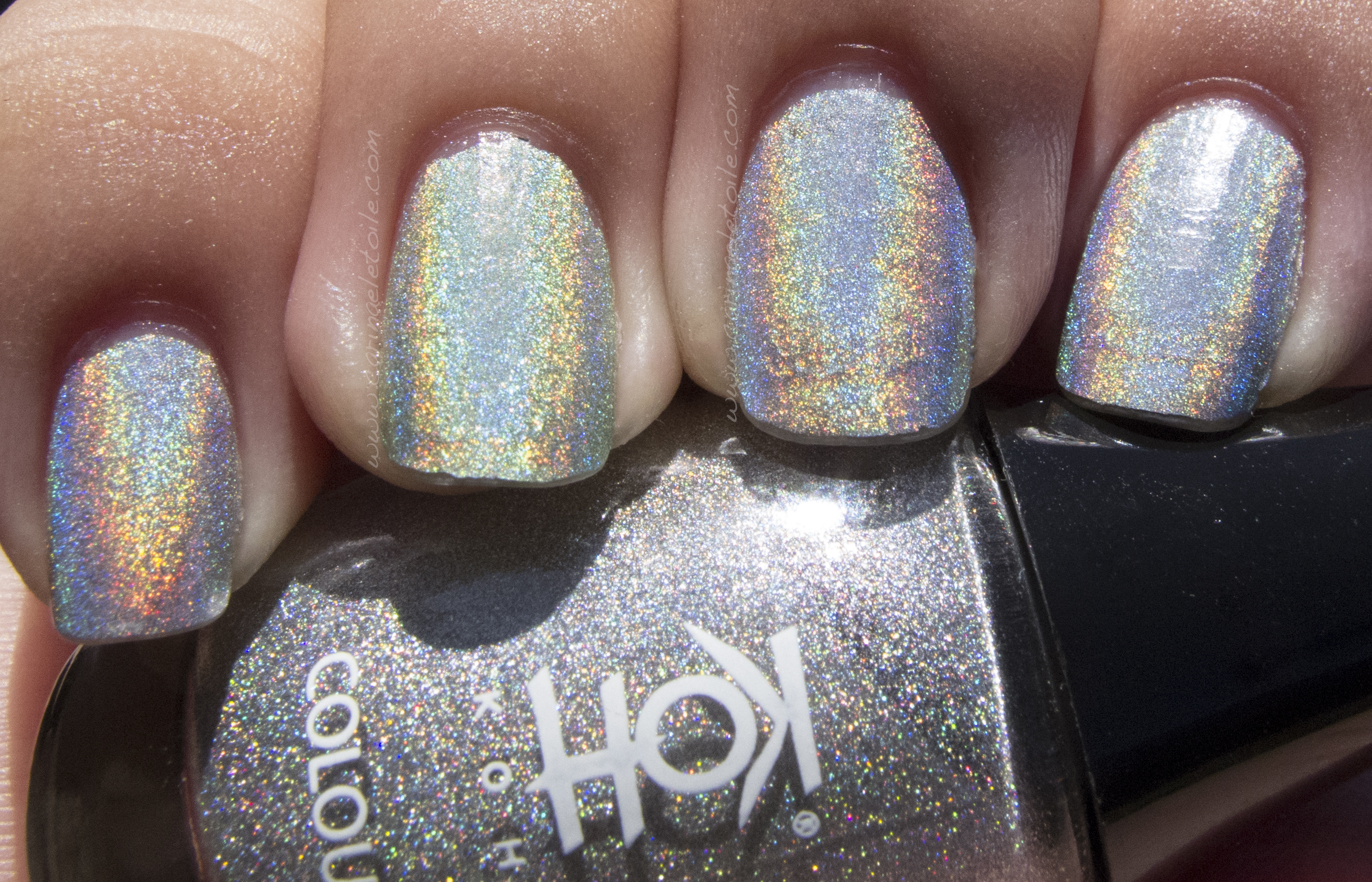 Koh Platinum Silver has a good formula that dries quickly and was no more difficult to use than other holographic polishes.