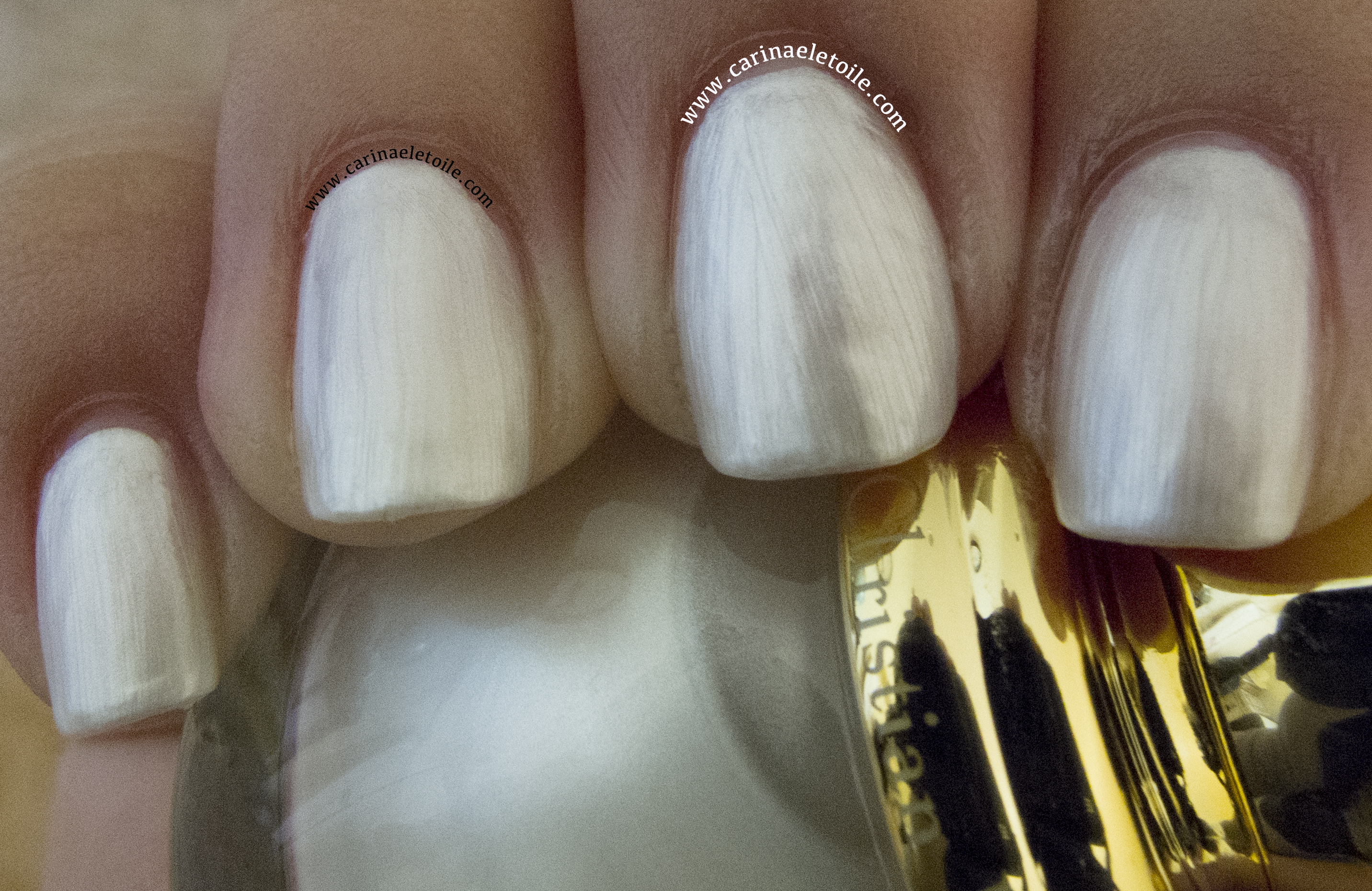 This color is also something that I was so impressed and surprised by. Three coats that dried quickly and frankly, looked very heavenly on my nails. In the shade, this color has an ethereal quality that I like. Sadly, because it’s so frosty/shimmery, I had streaky marks that drove me BATTY.