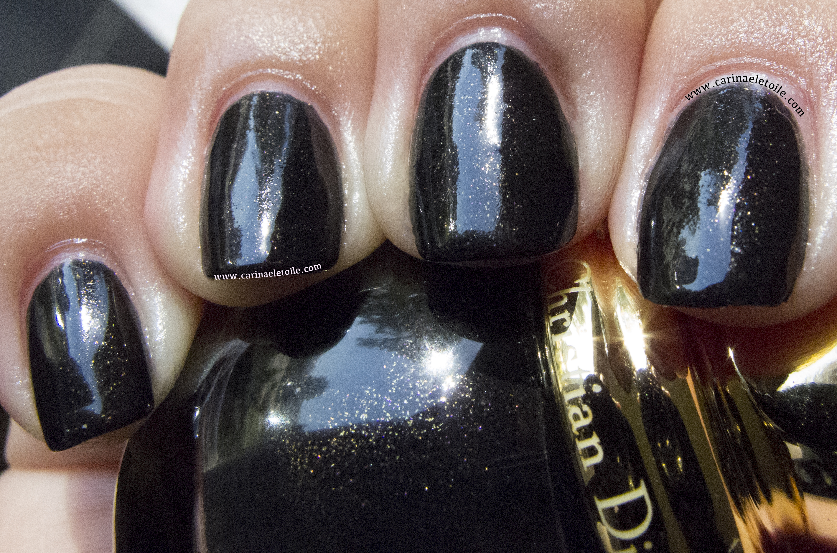 Diva is this lovely black polish with small smatterings of micro fine gold glitter…and it’s a color I’ve seen before. It’s very similar to Chanel’s Black Satin and Rescue Beauty Lounge’s Iconoclast. Formula on this was great and quick drying. Opaque in two very thin coats.
