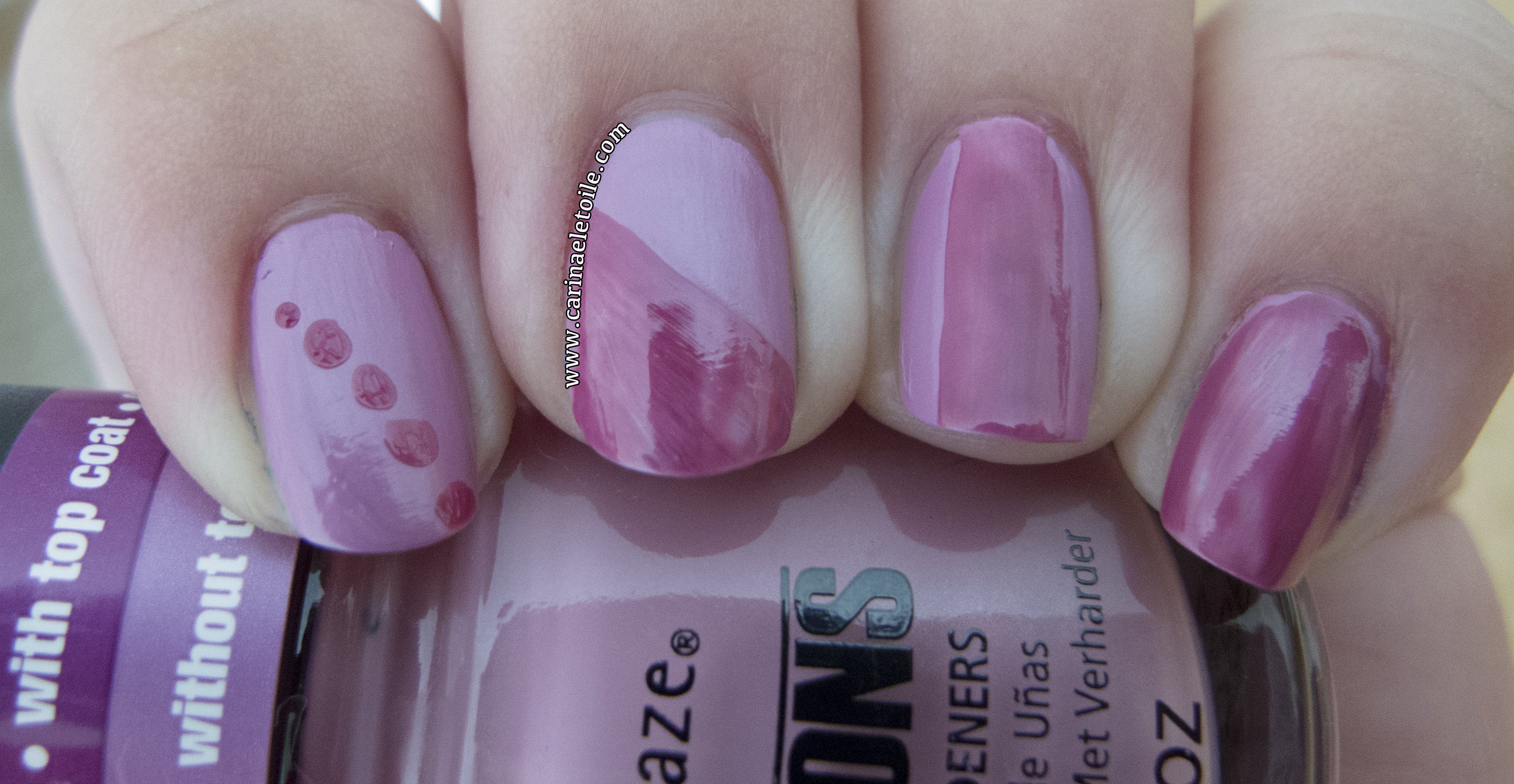 I liked this color because it’s a pinky-lavender creme and when I put it on, I liked it as is…however, I had to give a shot with the top coat and man, what a hot mess that was.