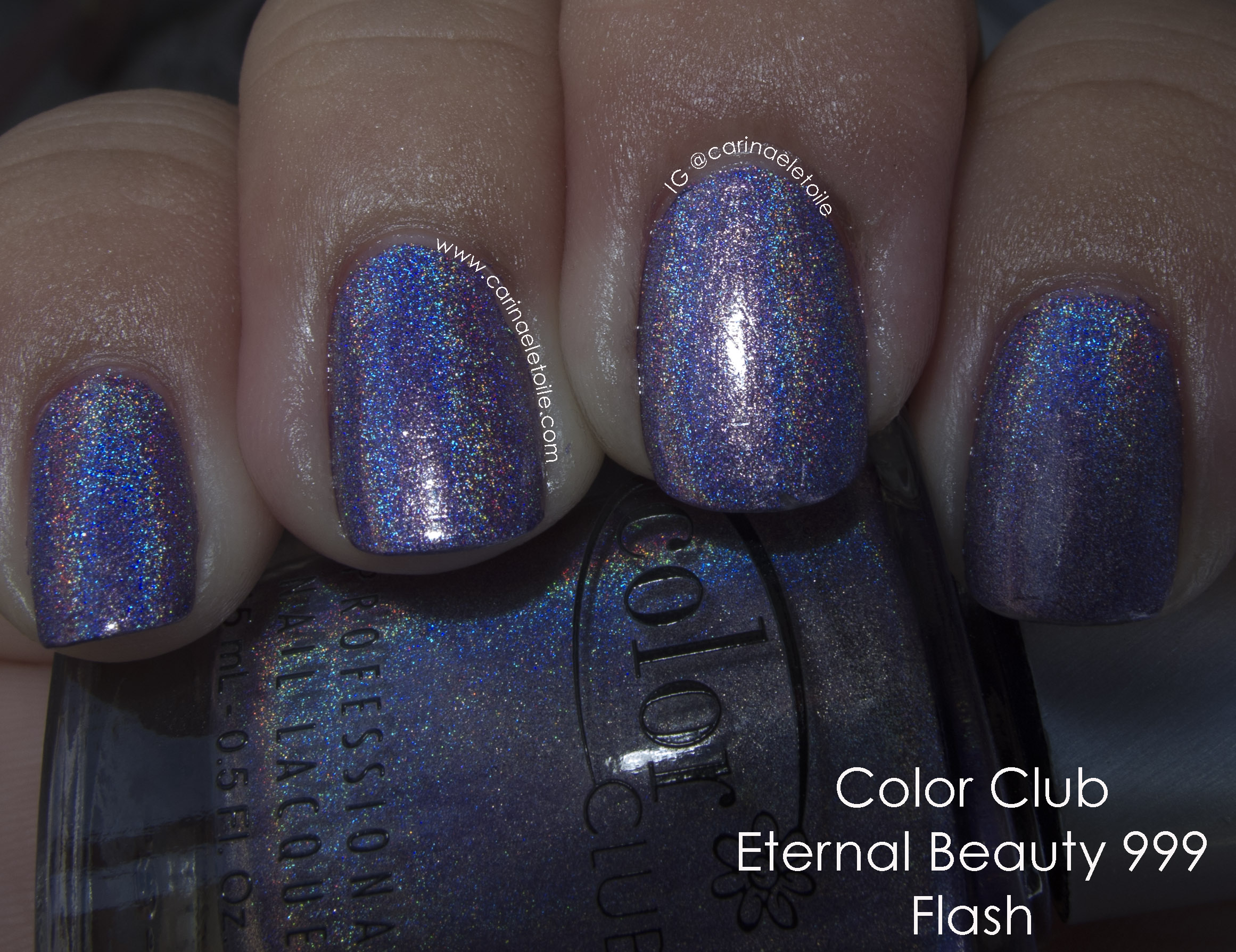 This is a cool toned lavender in some light, purple in others. You can see how it plays between the two below in the swatches that I did. Color Club Eternal Beauty did something that some of my holos don’t do – hold up well in direct sunlight. This second set of the Halo Hues collection that was released earlier this year is not as delicate as the fall collection’s.