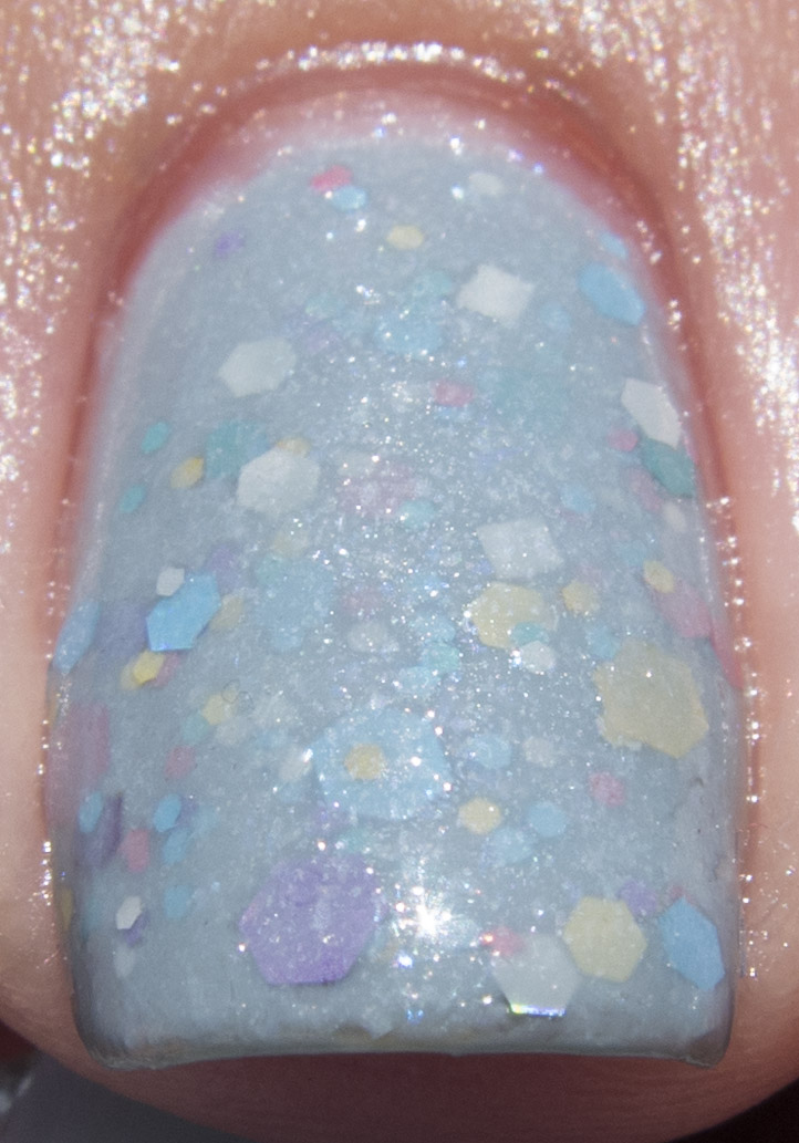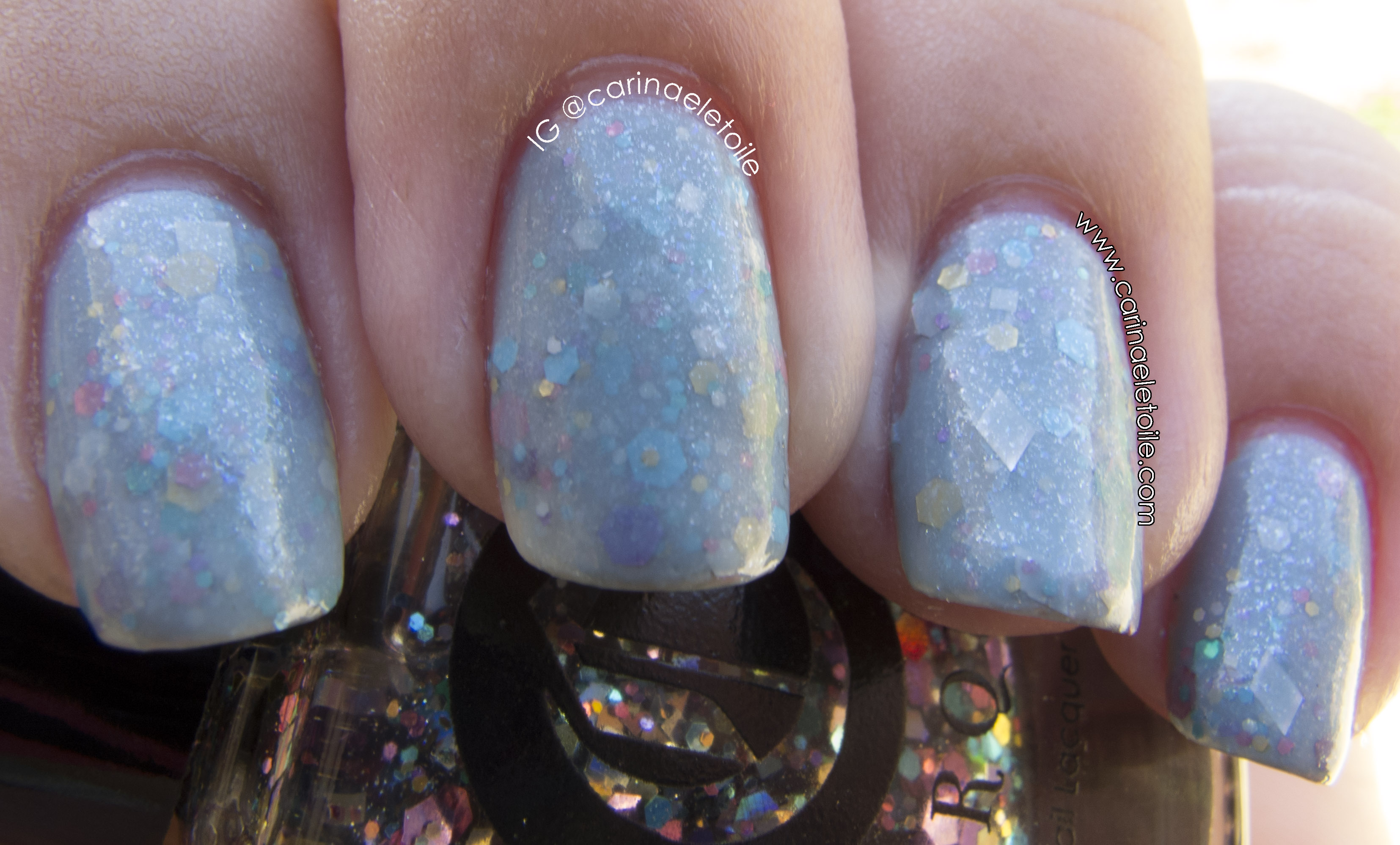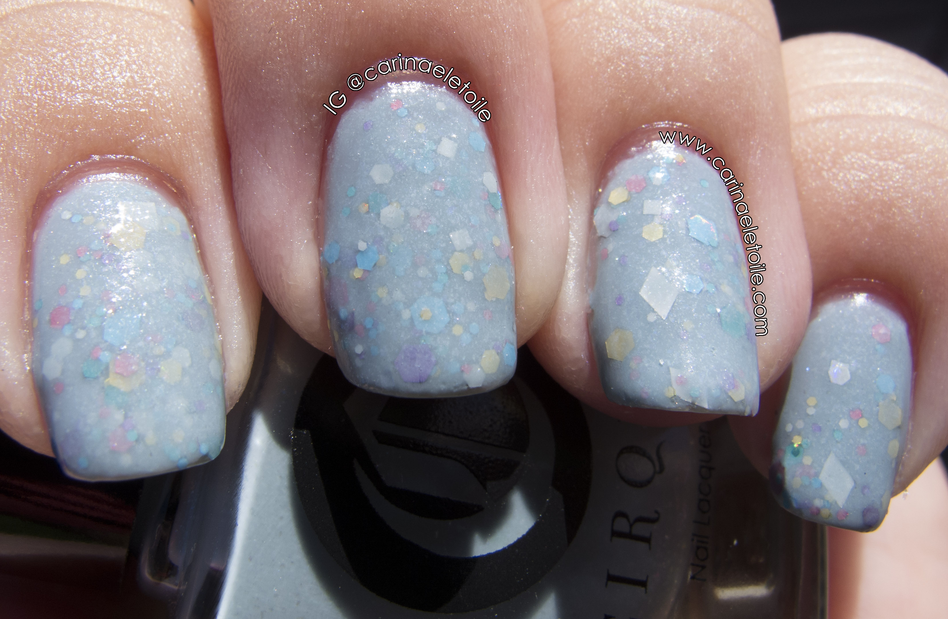 Cirque XX is a glitter and if you’re not careful, it can lump up and be chunky if you’re not paying attention. I did one very thick coat in the shots below unless otherwise noted.