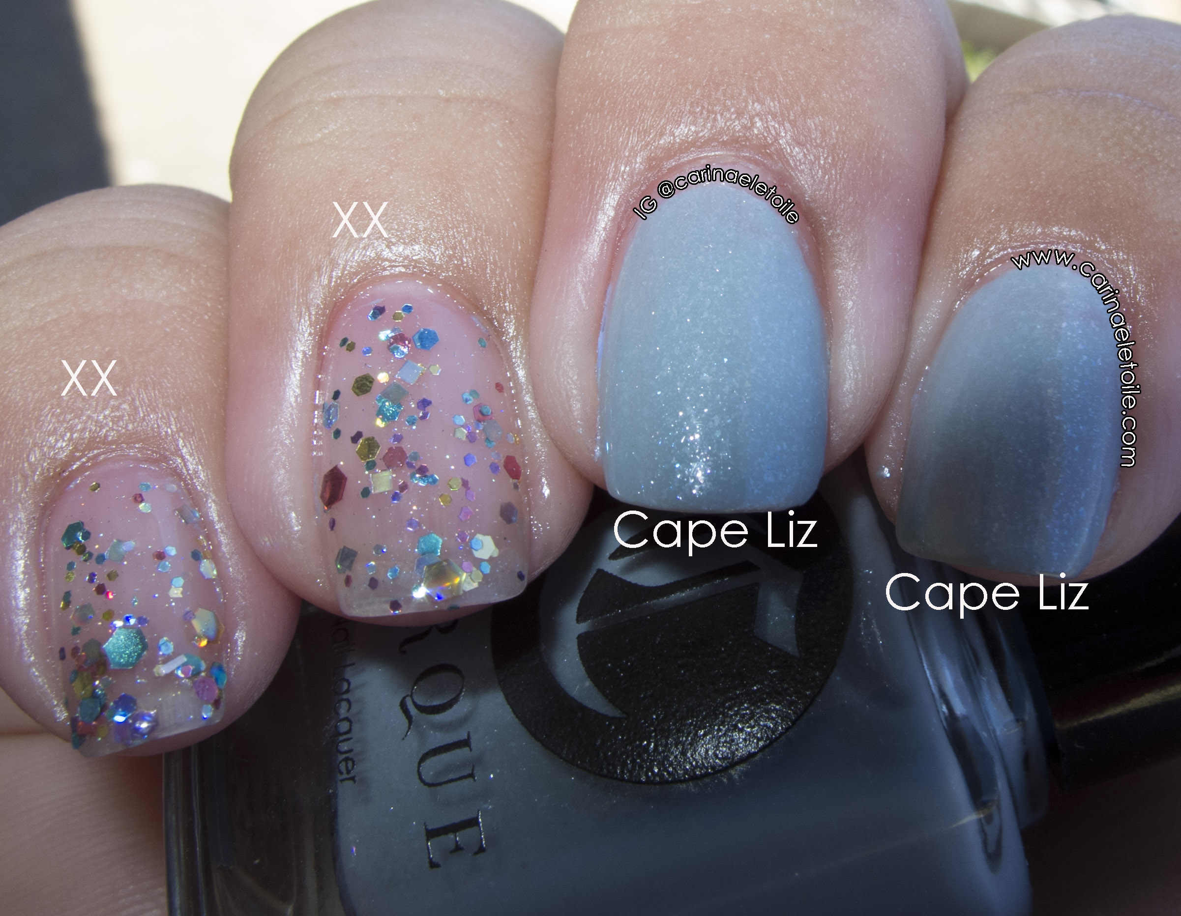 I have no real complaints about these colors because frankly, they were both so wonderful to work with. Both dried quickly. Both were just gorgeous! I did have a small problem with Cirque Cape Liz because the first coat was chalky and uneven, but it took care of itself in the second coat.