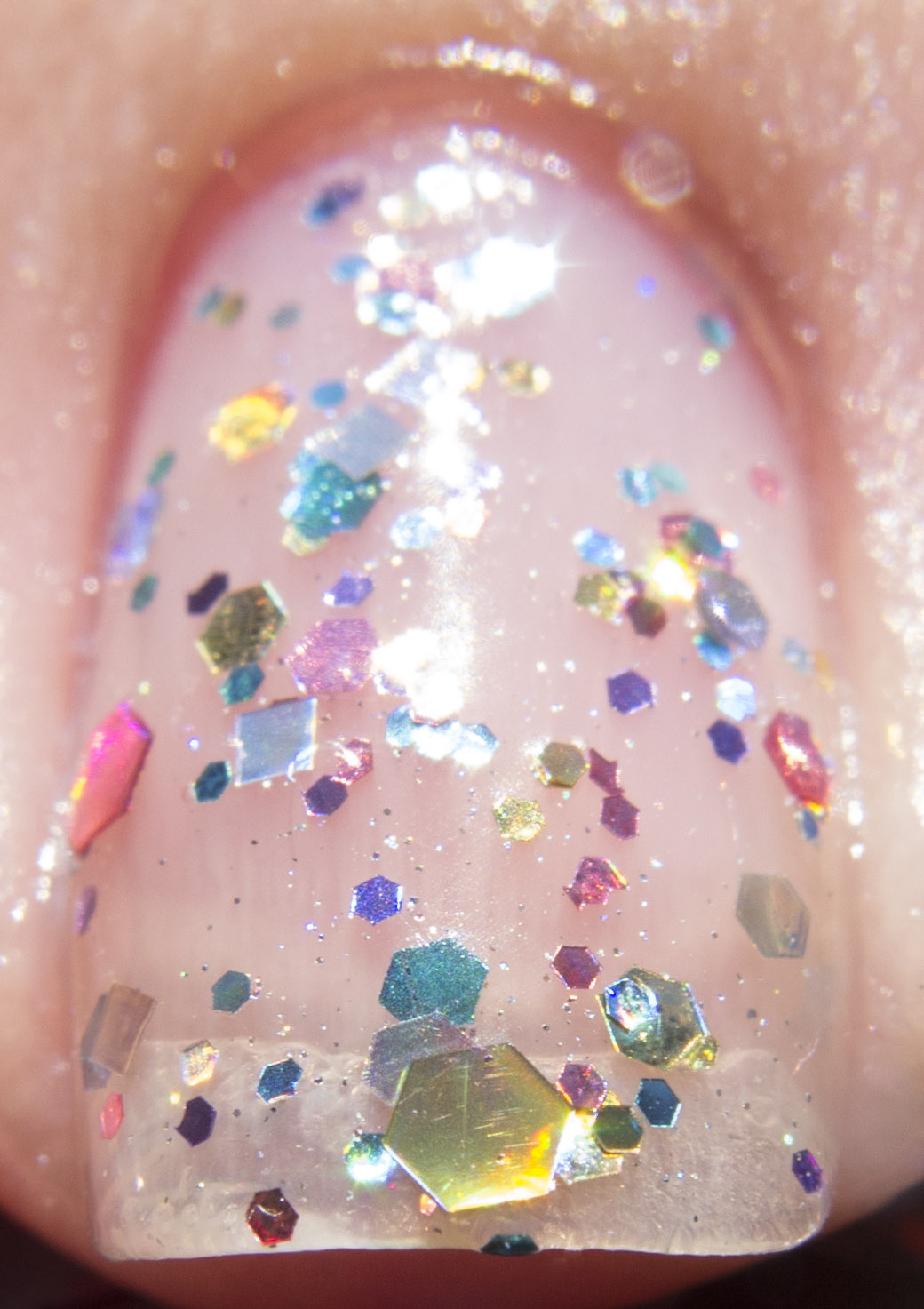 Cirque XX is described on the Cirque site as “A rainbow confetti made with over 20 different types of holographic glitter” and they were not kidding.