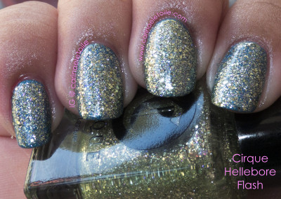Why? Because Cirque Hellebore is really opaque in one coat, but I did two. It dries quickly. It really sparkles and shines. I mean really sparkles and shines. I sometimes think other glitters wish they could carry the Cirque name/logo, if only to be seen as something special because Cirque’s glitters really are something special. I know that Cirque has won me over with every single bottle I’ve purchased as well as the stellar customer service. If you haven’t purchased anything from Cirque, go do it! If you love blinding glitters, this is it. This is your thing.
