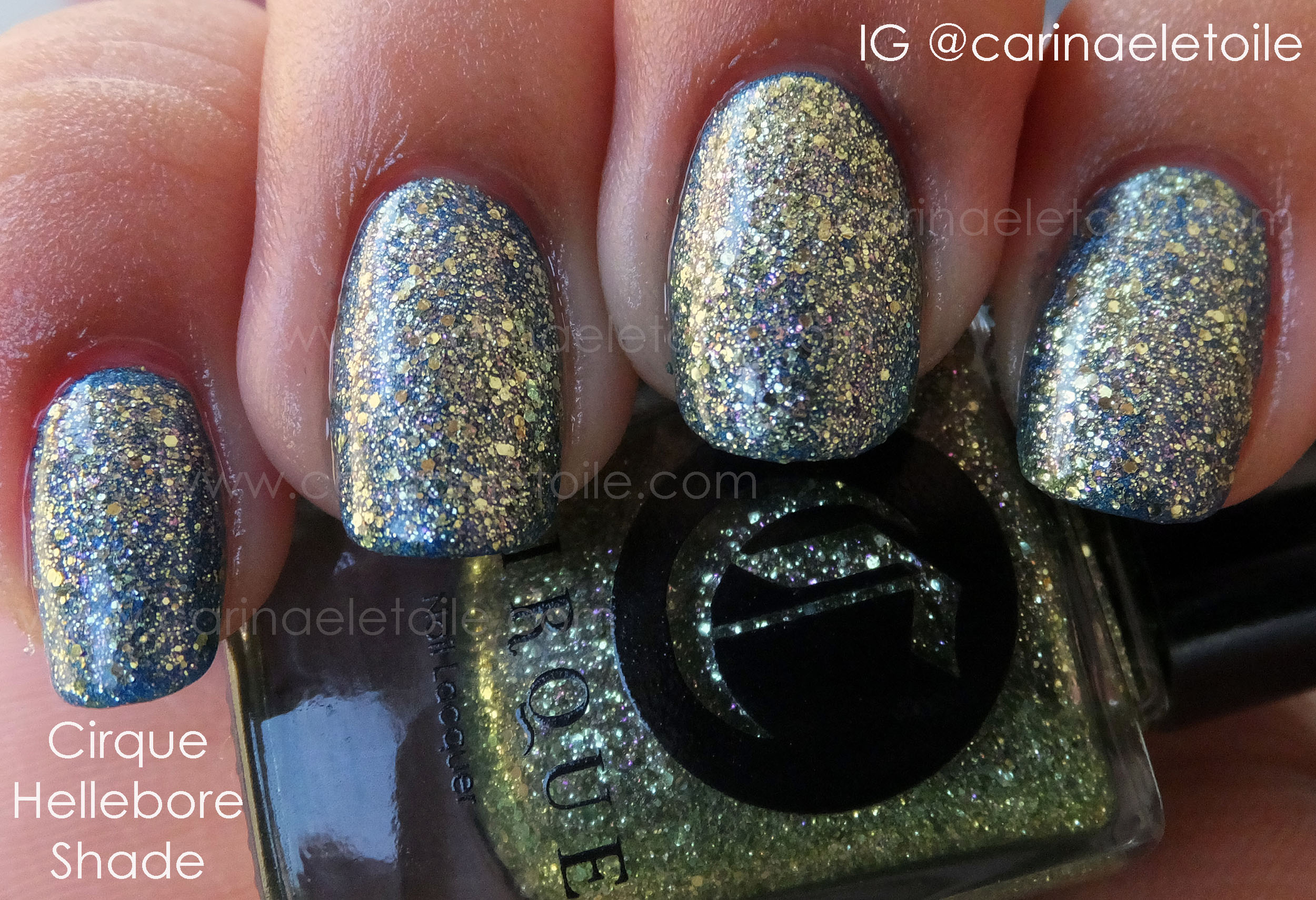 Cirque Hellebore totally eclipsed the beauty of Blue Ivy, but BI was a great base to play up the green glitter.