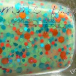 Glitter couldn’t shine – it hid! But you can see it sort of peeking through in the bottom left hand corner of the swatch.