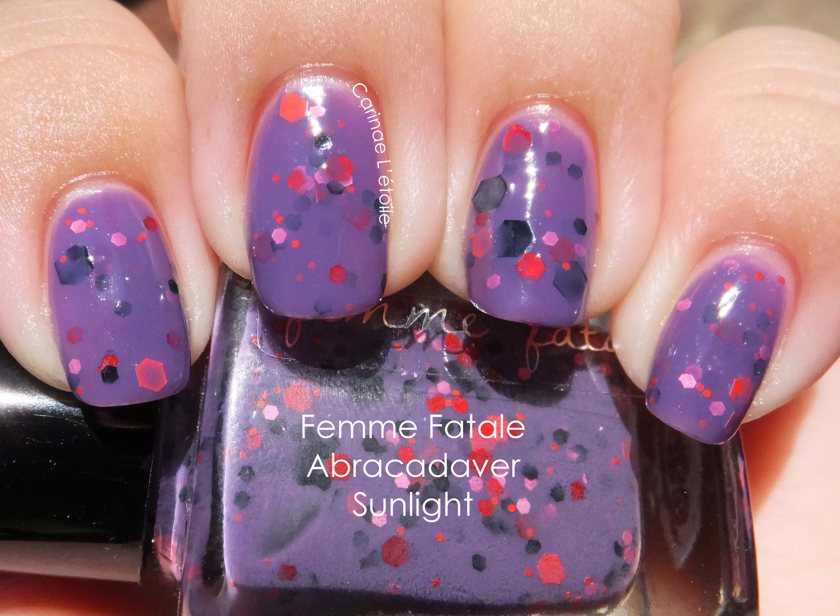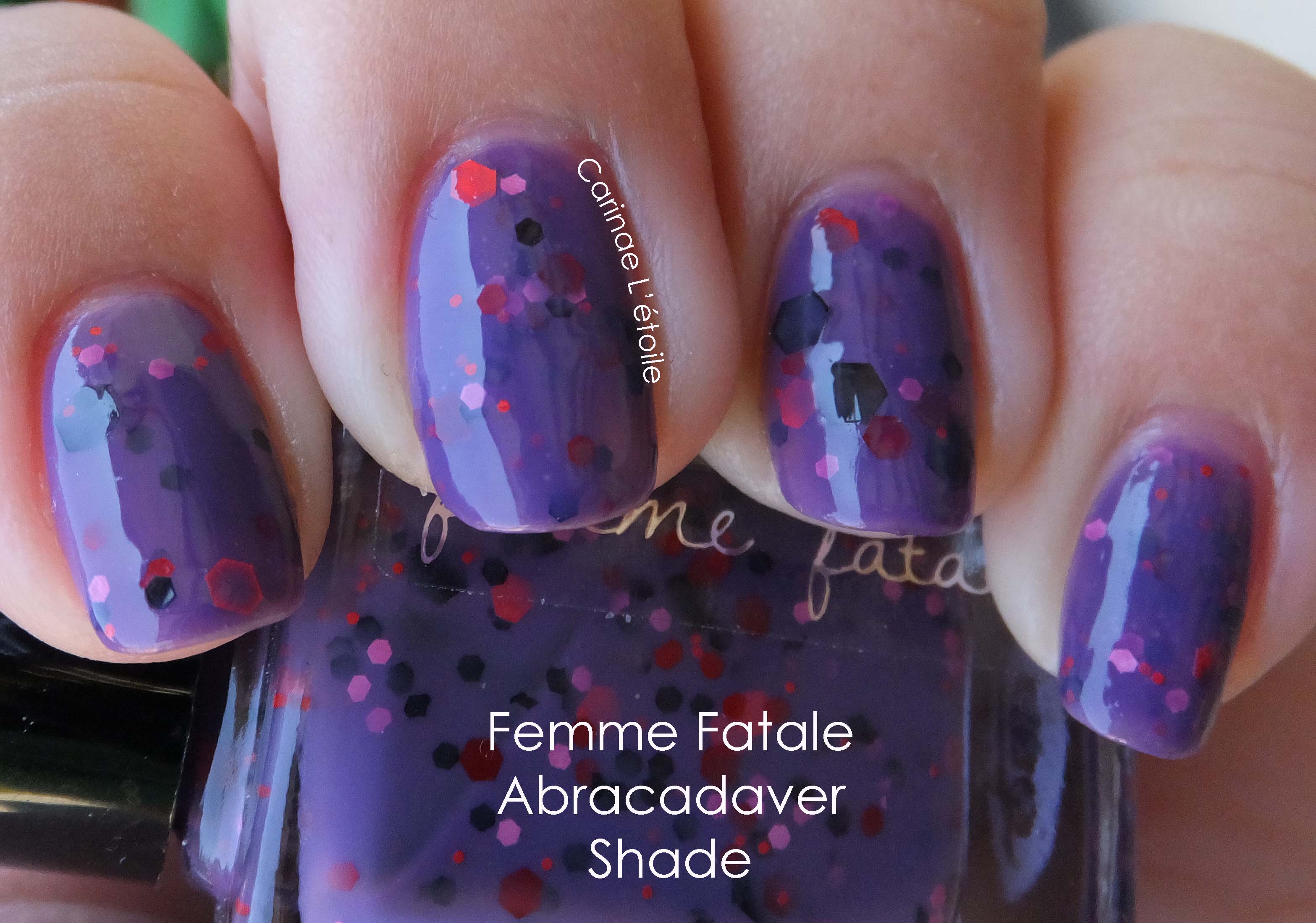 Femme Fatal Abracadaver is described as “…a dusty purple crelly with a scattering of pinks, reds and black.“