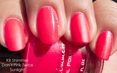 In many ways, KB Shimmer Don’t Pink Twice reminds me of my neon splattered youth where I thought I was all cute and awesome in this bright clothing. Yea, no one needed to see that.