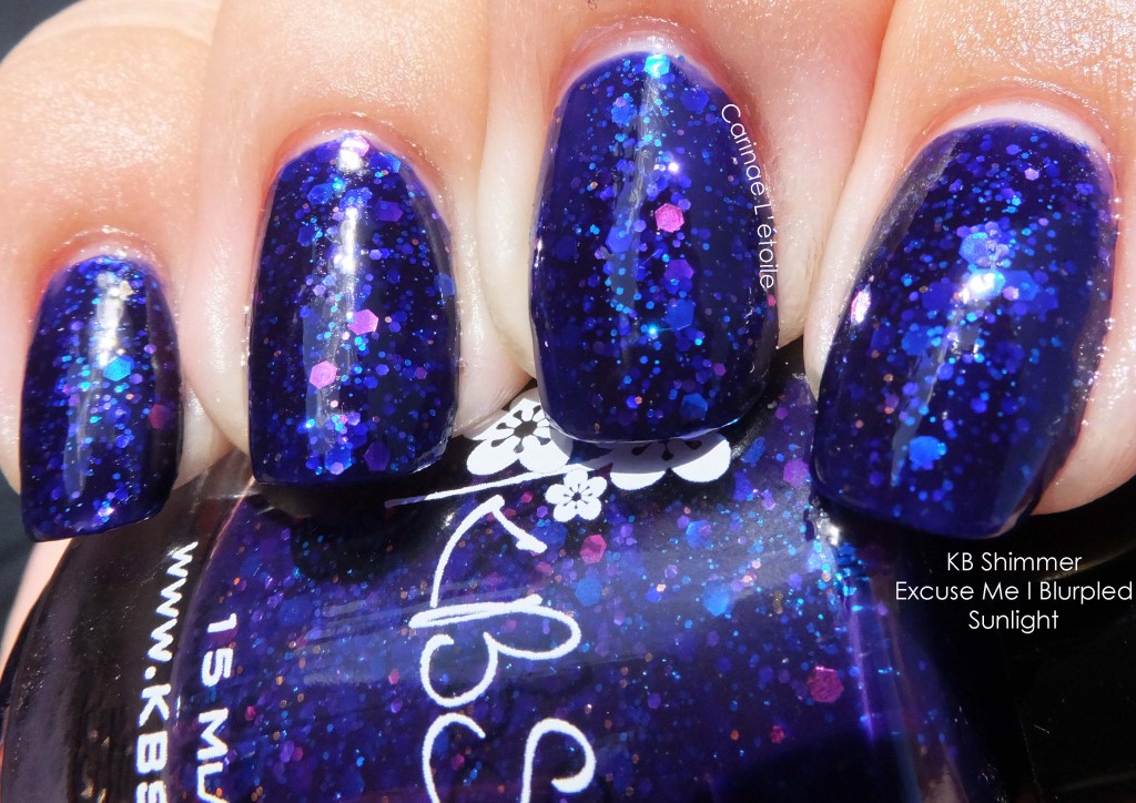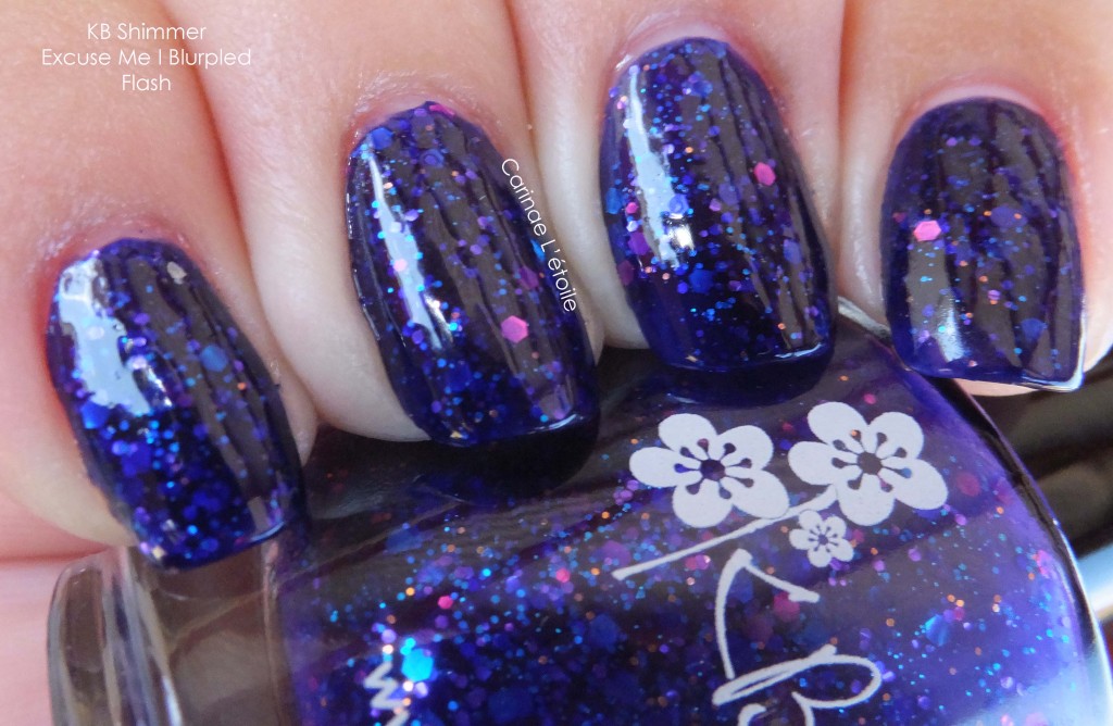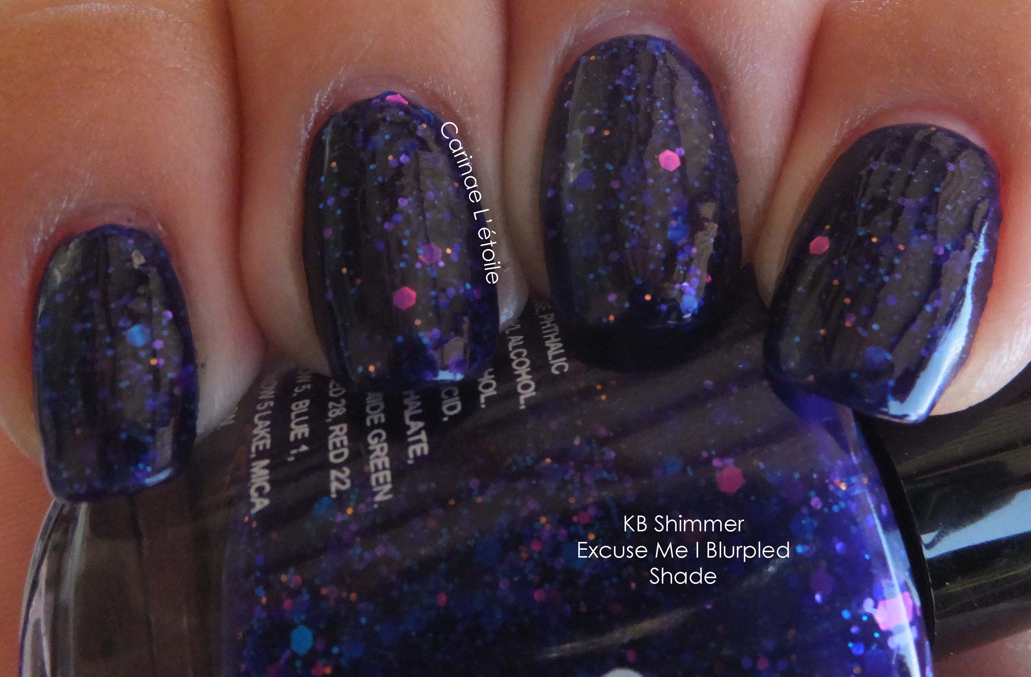 KB Shimmer Excuse Me, I Blurpled is described on the KB Shimmer site as “is our newest jelly polish. It is a unique shade, almost navy, but with purple undertones, its almost indigo. Depending on the light, this  shade can lean blue, but all in all, it is a really a hard shade to pin down. To this jelly, we added glitters in many shades of blue, purple, and added a dash of copper. Best in two coats.”