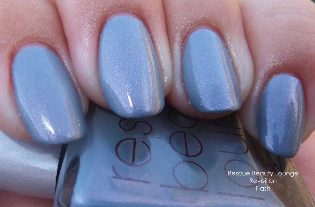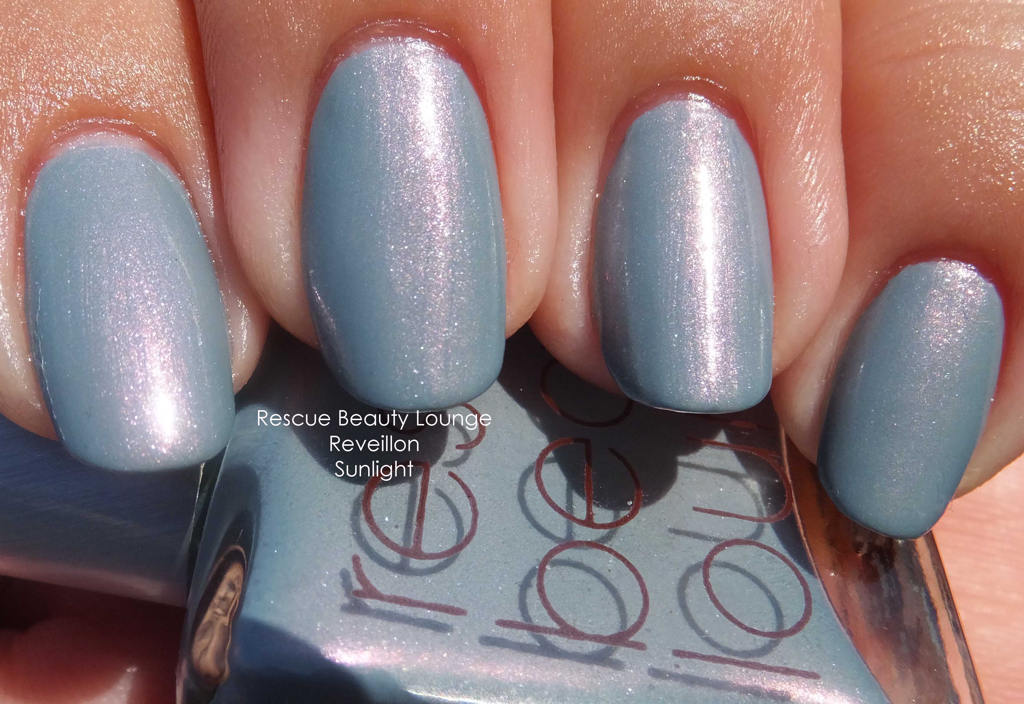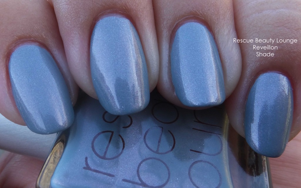 Rescue Beauty Lounge Réveillon“My vision for Réveillon is based on the cold winter afternoons growing up on the Quebec/NYS border. This is the borderland where we speak both French and English; for many on the American side, it’s the furthest south our families migrated. Réveillon is a holiday dinner held for Christmas and/or New Year’s Eve. It is an event of tradition and family, marking the transition from night to day as the dinner/party lasts well past midnight. Réveillon is celebrated with luxurious feasting in the company of family and friends. Given that it takes place after the winter solstice, the holiday suggests the coming of spring, albeit many months from that day. The color in my mind is a cool, silver-toned blue (more silver than blue) inspired by the icy landscape of late December. There is an internal flash of gold/white shimmer, perhaps violet, representing the light as reflected off ice, as well as the fireworks often used to light the night sky on Réveillon. Réveillon is mysterious with a complex depth and internal shimmer/light.” Cara’s longing.