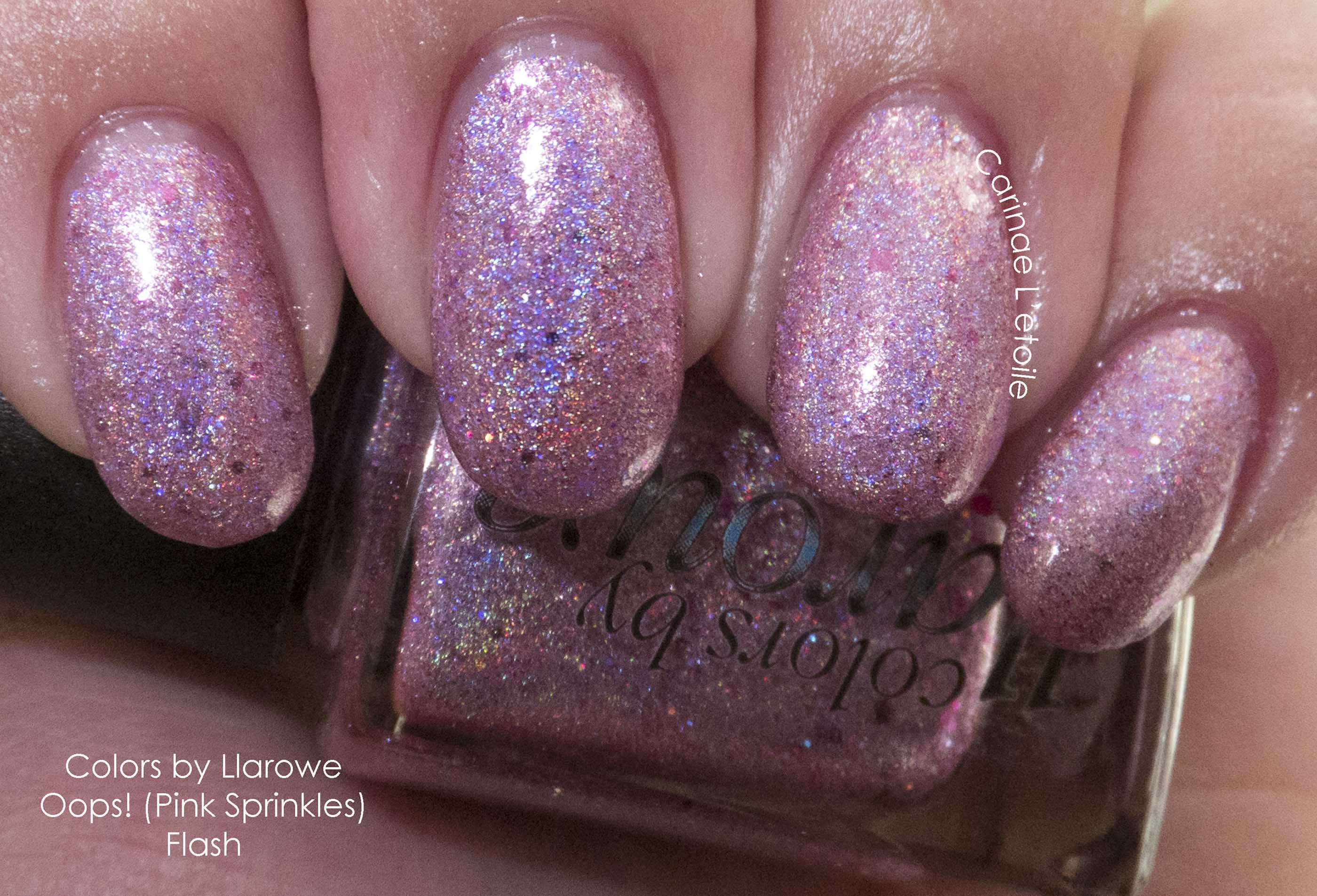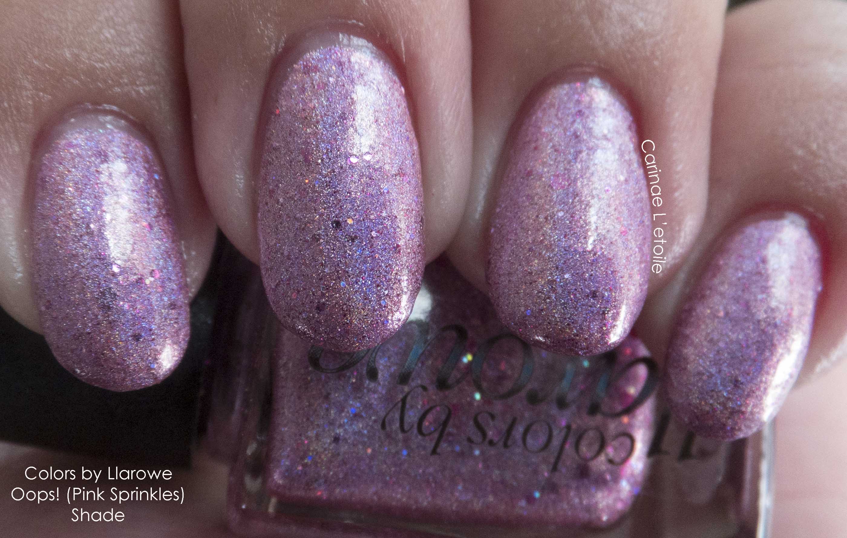 Colors by Llarowe Oops (Pink Sprinkles)…ah, where can I even begin. My second favorite color that has some serious holo going on along with pink/magenta glitter.