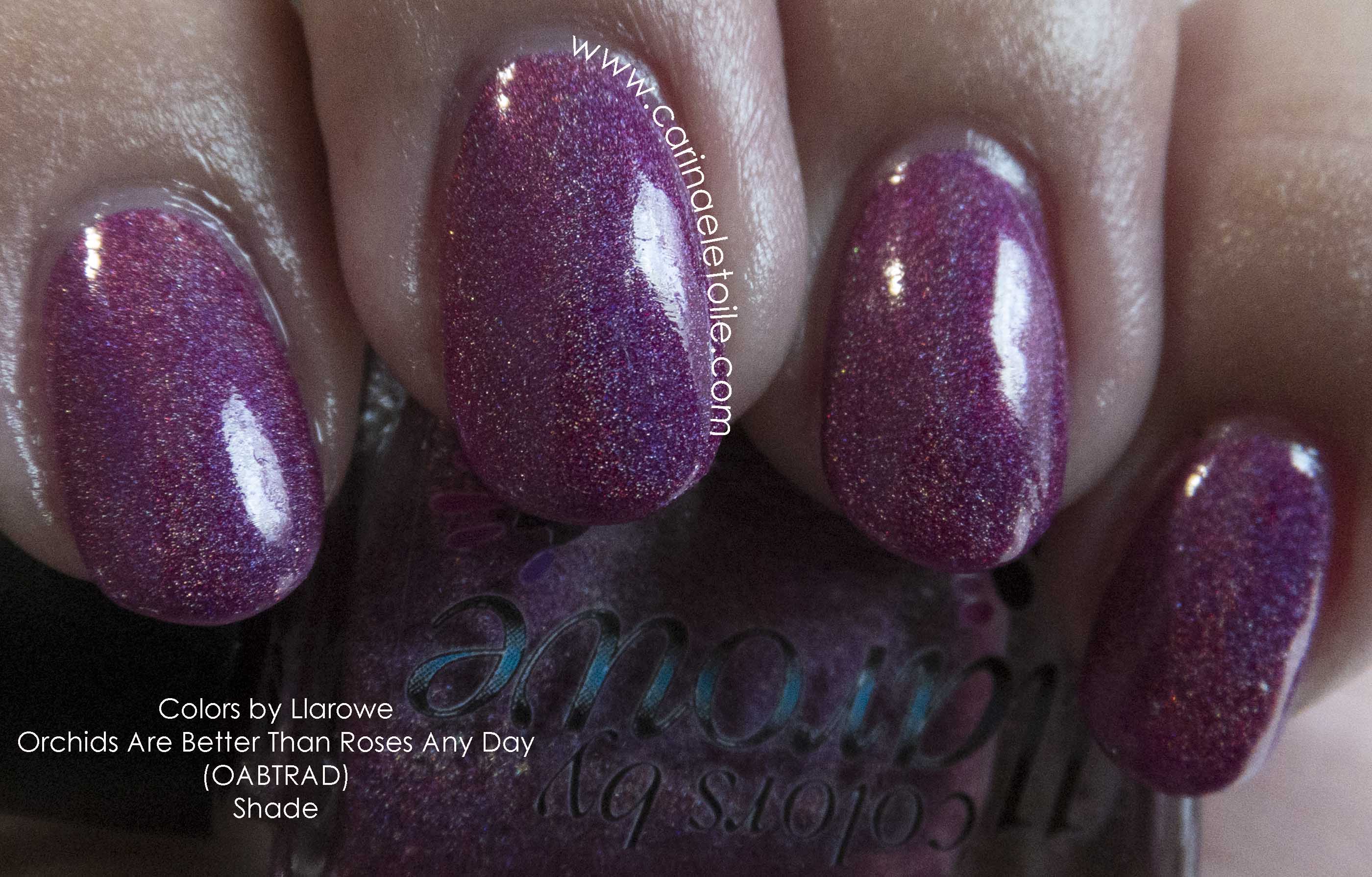 Colors by Llarowe OABTRAD…what the heck is OABTRAD?! It’s short for Orchids Are Better Than Roses Any Day. It’s true! Orchids are gorgeous and I love them. Sadly, I’m super allergic to them. One sniff and I’m coughing, wheezing and desperately seeking my inahler.