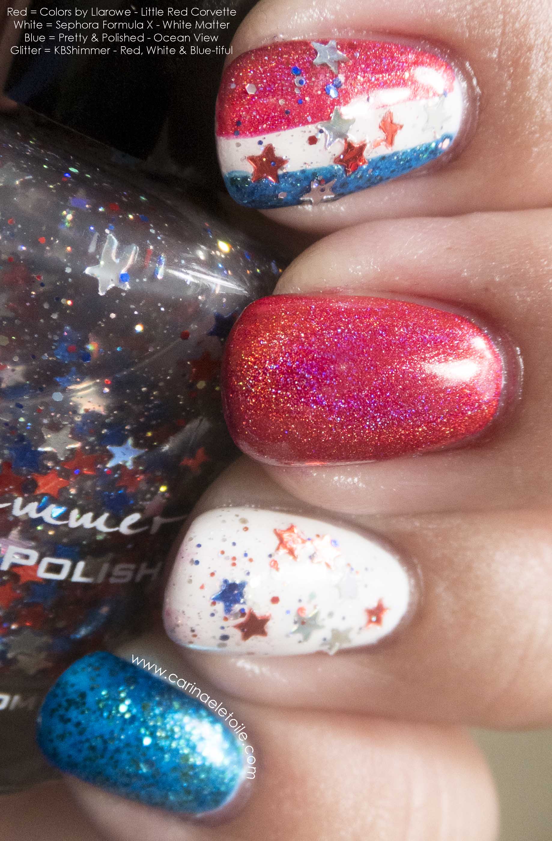 KB Shimmer Red White & Blue-tiful nail macro shot