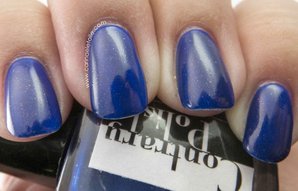 Contrary Polish Bright Lights Small City is a beautiful crelly that is a gorgeous slightly tinged purple dark blue with miniature copper flecked glitter…I LOVE THIS. It is four coats and I was debating on if I wished this were totally opaque or keep it as a crelly. I like this as a crelly. This is super gorgeous in its simplicity.