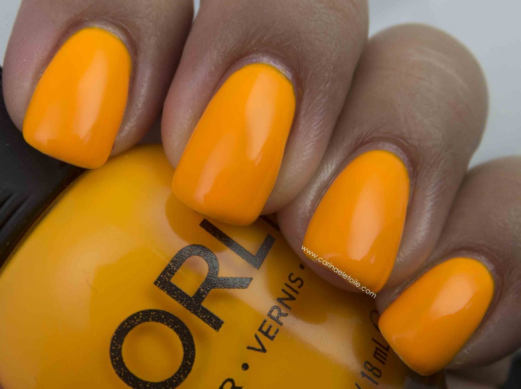 Fair warning — this color, in real life, is bright. Like you’d think retinal damage. I was a bit startled by it earlier when I was prepping dinner. Out of the corner of my eye, I wondered what the heck the brightness was. Oh, hi, it’s my nails — Orly Tropical Pop, to be exact!