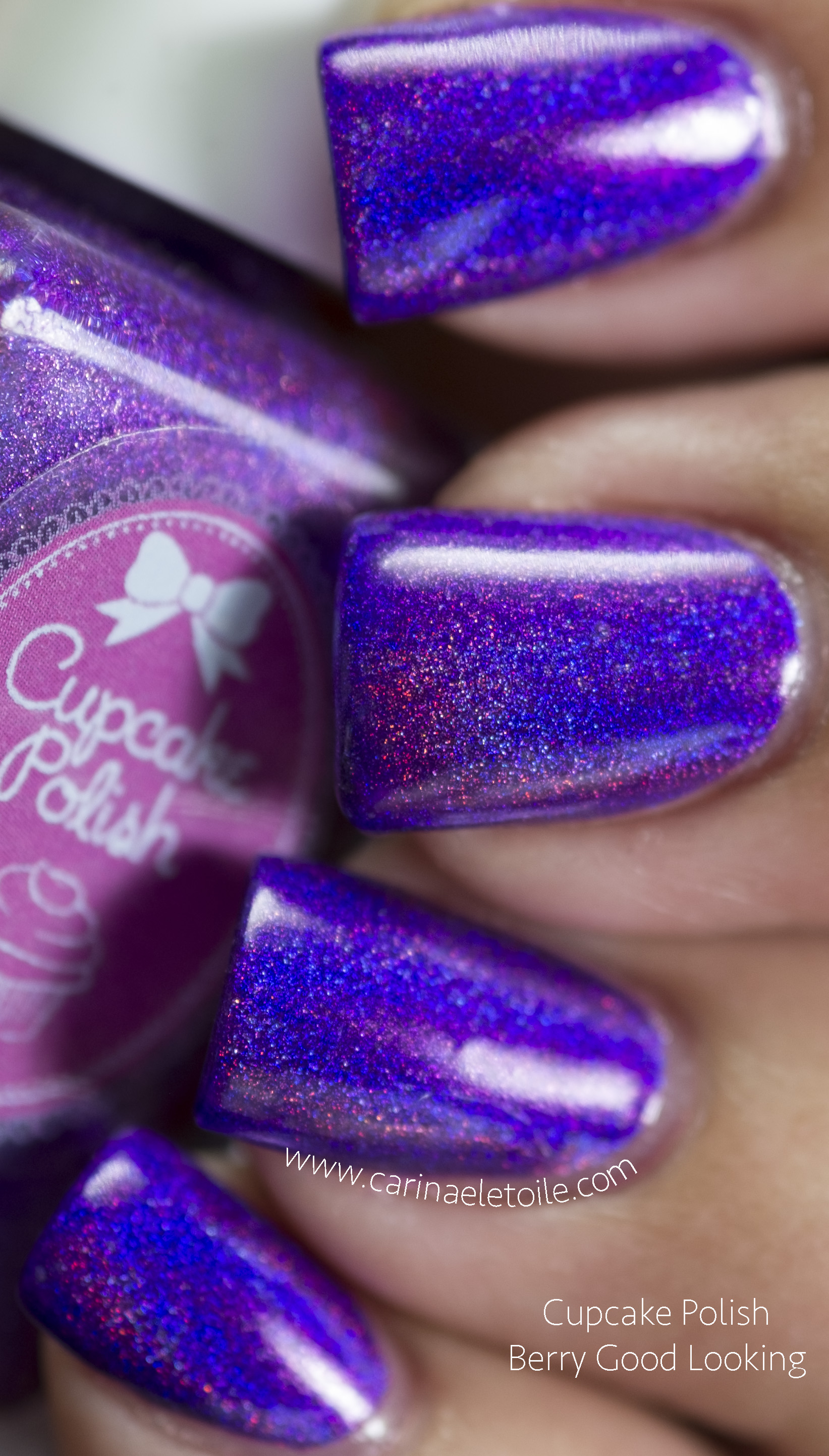 Cupcake Polish Berry Good Looking is BERRY good looking. Haha! When I first put it on, I thought, “Oh, it’s a pretty purple polish that failed to be a holo of any kind. I’ll still take the pictures.”