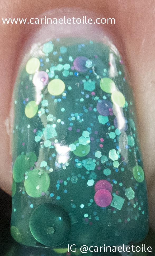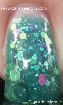 This is a gorgeous, jewel-toned green with some lovely glitter with a pink thrown in that goes quite well.
