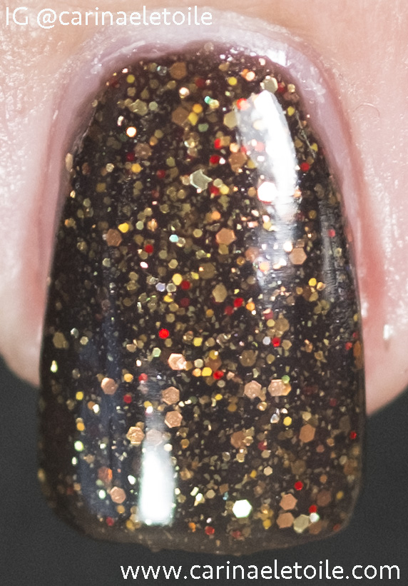 Described on the site as “A deep chocolate jelly, accented with sparks of microfine glitters that will have you stand out no matter how much you try to blend in.“, it’s definitely true of the character that inspired this polish, Arya Stark.