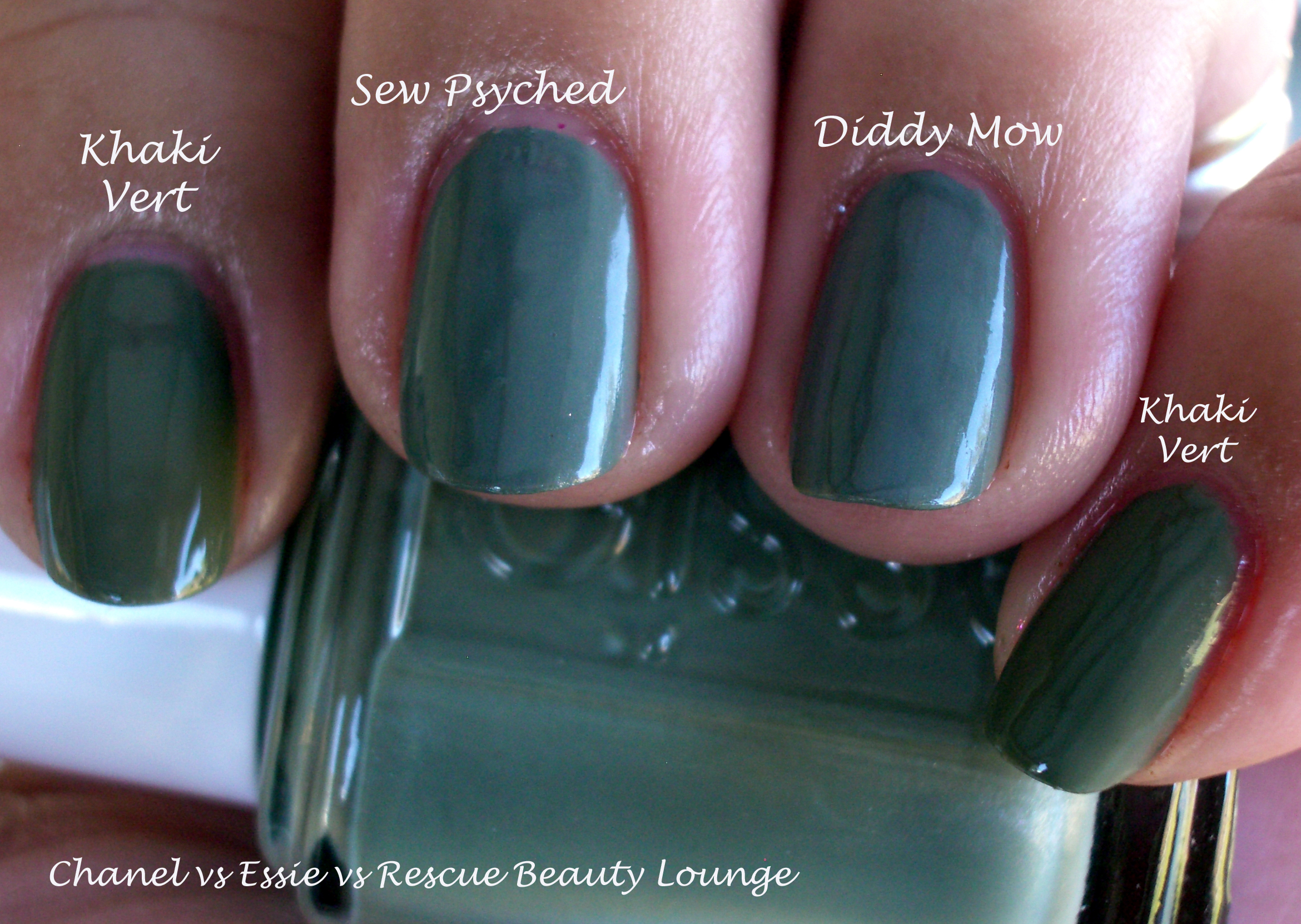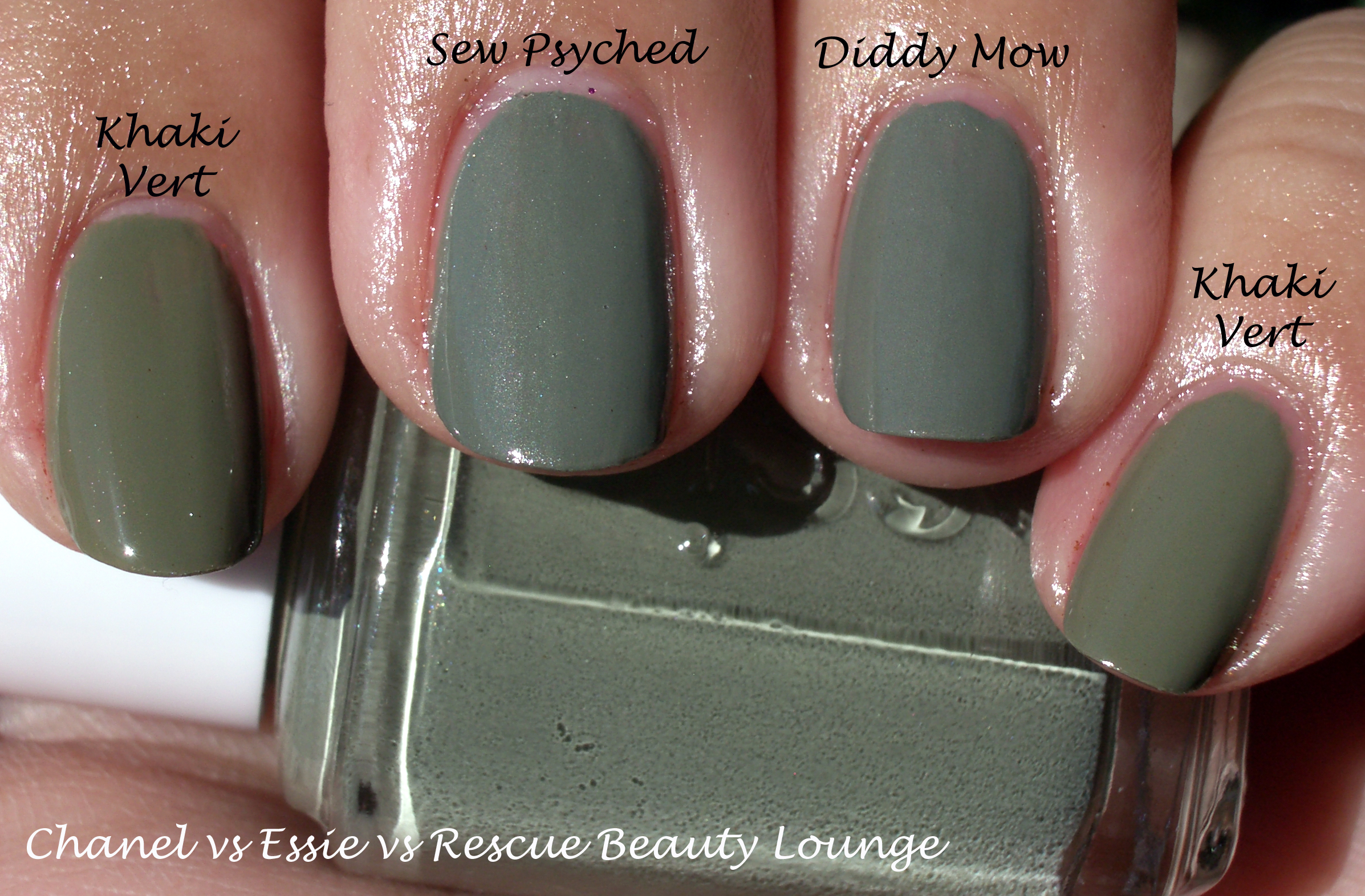In sunlight you can see the obvious difference between KV, SP and DM. KV has more green while SP and DM have more grey in it. Mr. CarinaeLetoile was so cute when he looked at Khaki Vert on me and commented, “It’s really like a military green. I think Army when I look at it.”