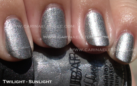 Attention: Nail tape newbie strikes again! yes, another epic fail on my part. But I do get credit for trying, right? 🙂 Also, I used the Diamond Top Coat that came with the polishes. It said it would be shiny…and it wasn’t. You’ll see in the pics. Also, I don’t have another Twilight shot because…I deleted it in my attempt to multi-task – you know, book plane tickets, pay bills and run some pics through Photoshop. I learned my lesson, I promise!